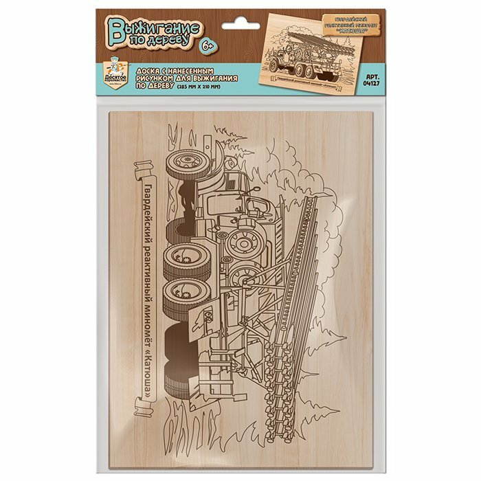 Выжигание По Дереву Доска с нанесенным рисунком. Гвардейский реактивный миномет "Катюша" (в пакете, от 6 лет) 04127, (ООО "Десятое королевство")