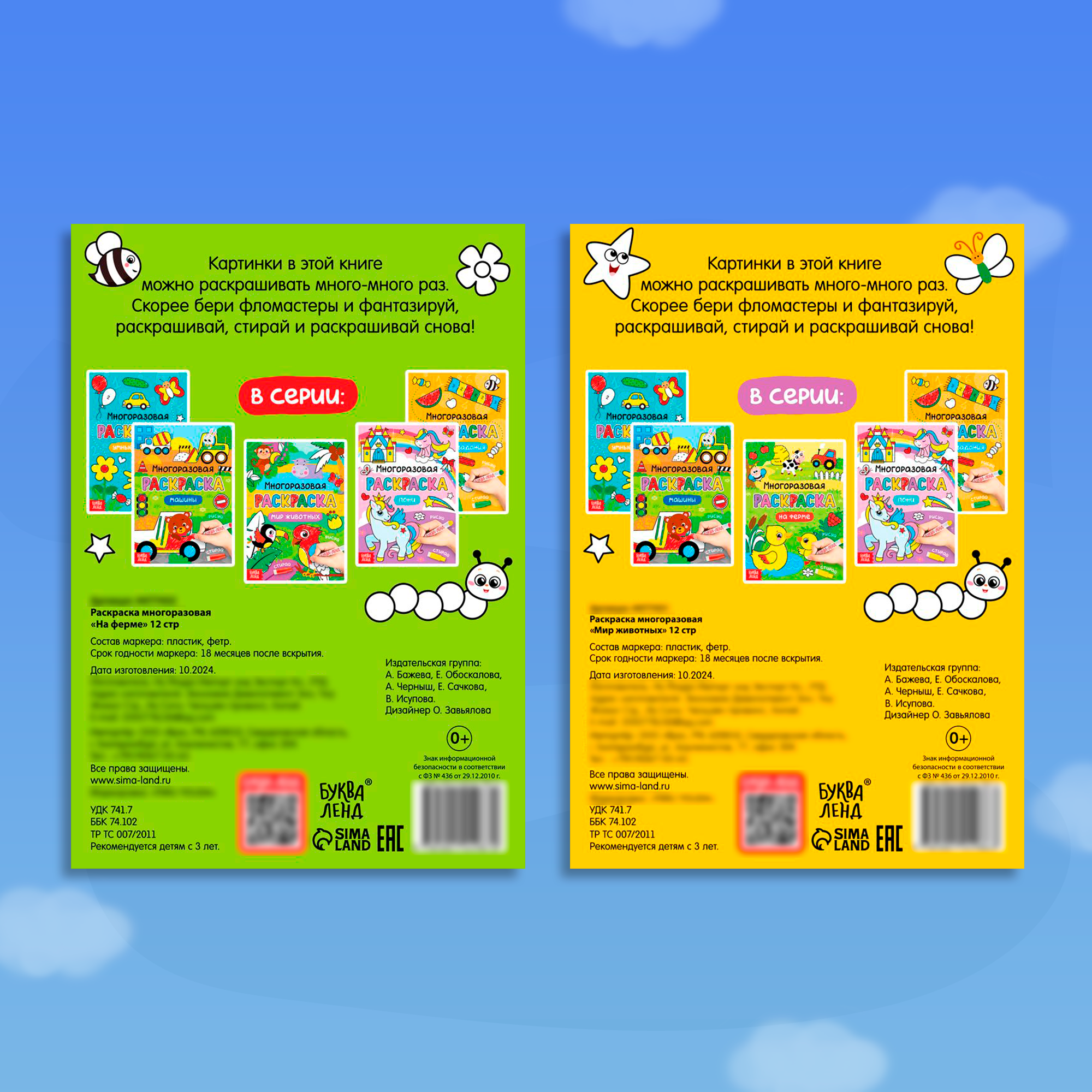 Раскраска многоразовая набор «Рисуй-стирай. Мир животных» 2 шт. по 12 стр.