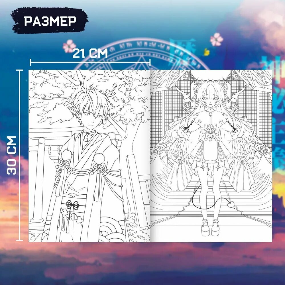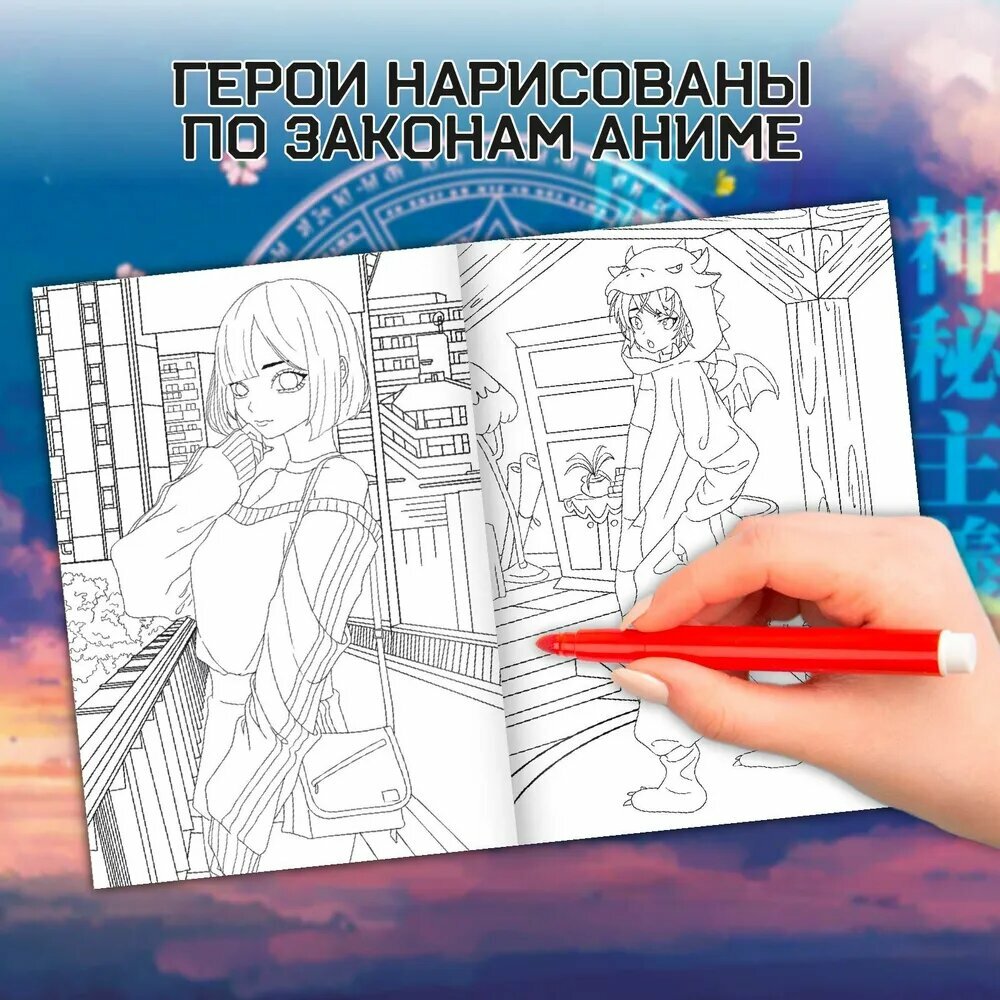 Набор раскрасок, 2 шт. по 16 стр., А4, Аниме