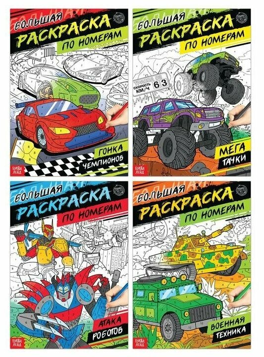 Набор раскрасок по номерам "Для мальчиков", 4 шт., по 16 стр.