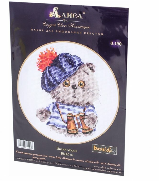 Купить Набор для вышивания крестом Алиса "Басик-моряк", 10х12 см, Творческий набор с комплектом качественных ниток мулине