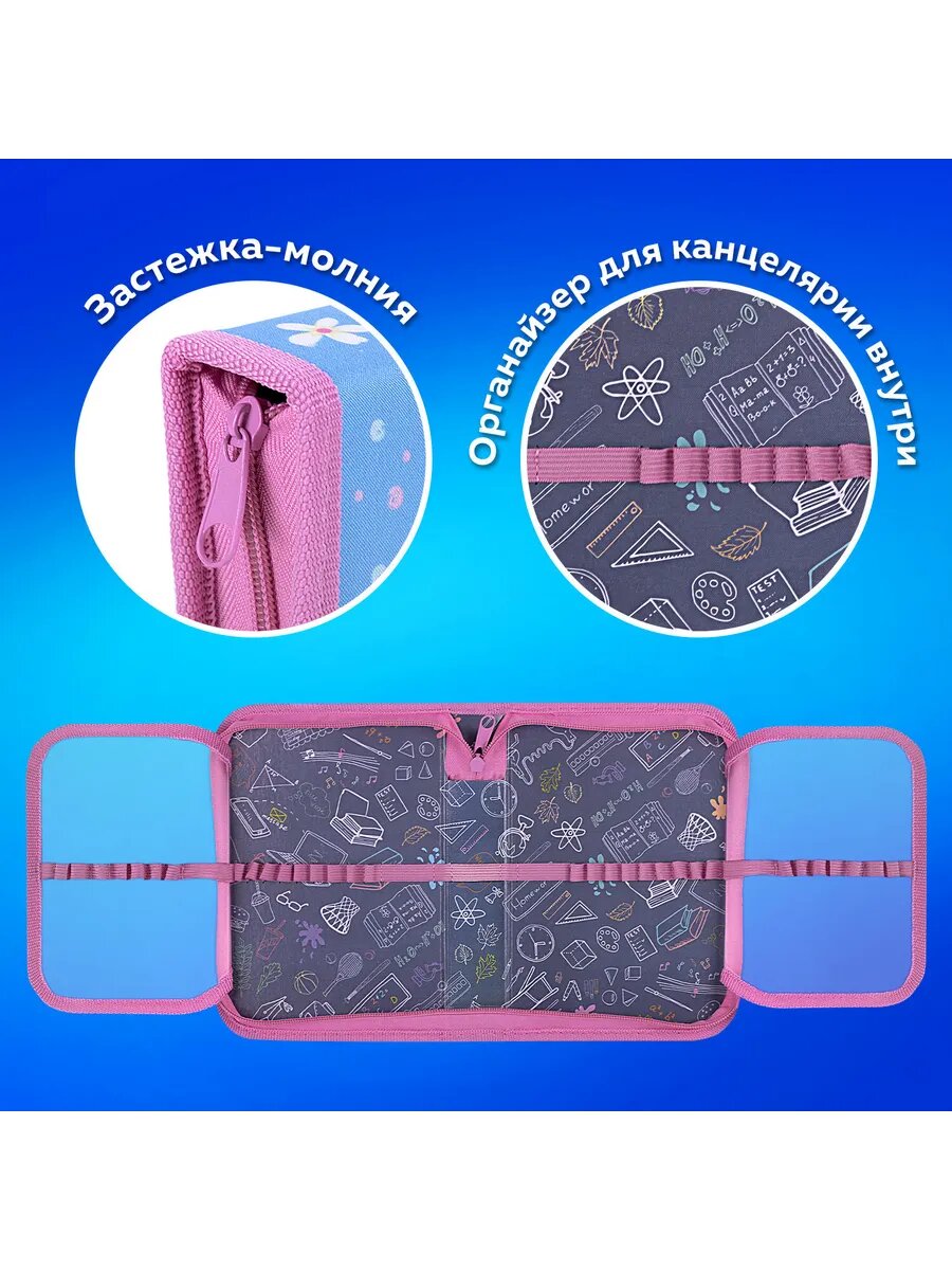 Пенал школьный для девочек для карандашей и ручек с 1 отделением, канцелярия для школы, 2 откидные планки, полиэстер, 20х14, Пифагор Sweet, 272288
