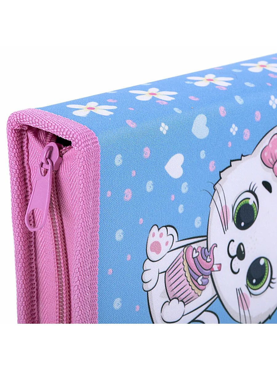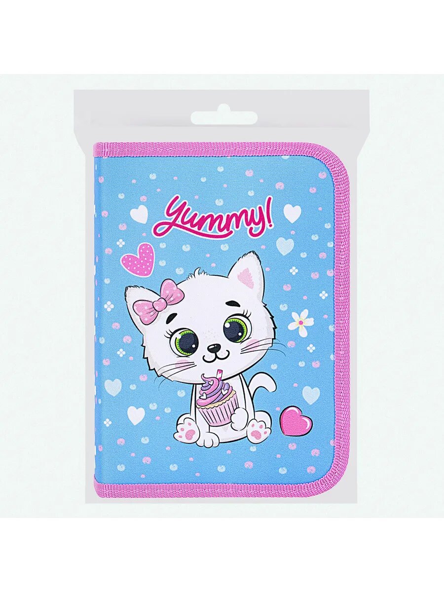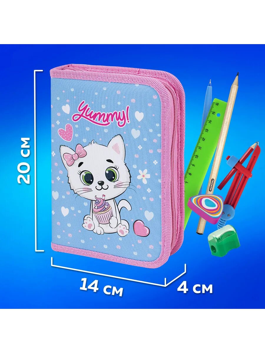 Пенал школьный для девочек для карандашей и ручек с 1 отделением, канцелярия для школы, 2 откидные планки, полиэстер, 20х14, Пифагор Cat, 272287