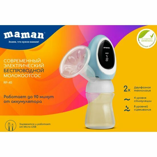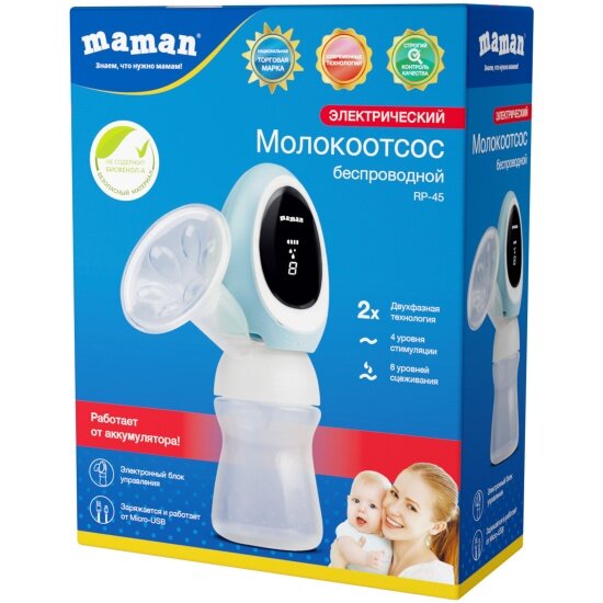 Молокоотсос электрический Maman RP-45 беспроводной интересное: