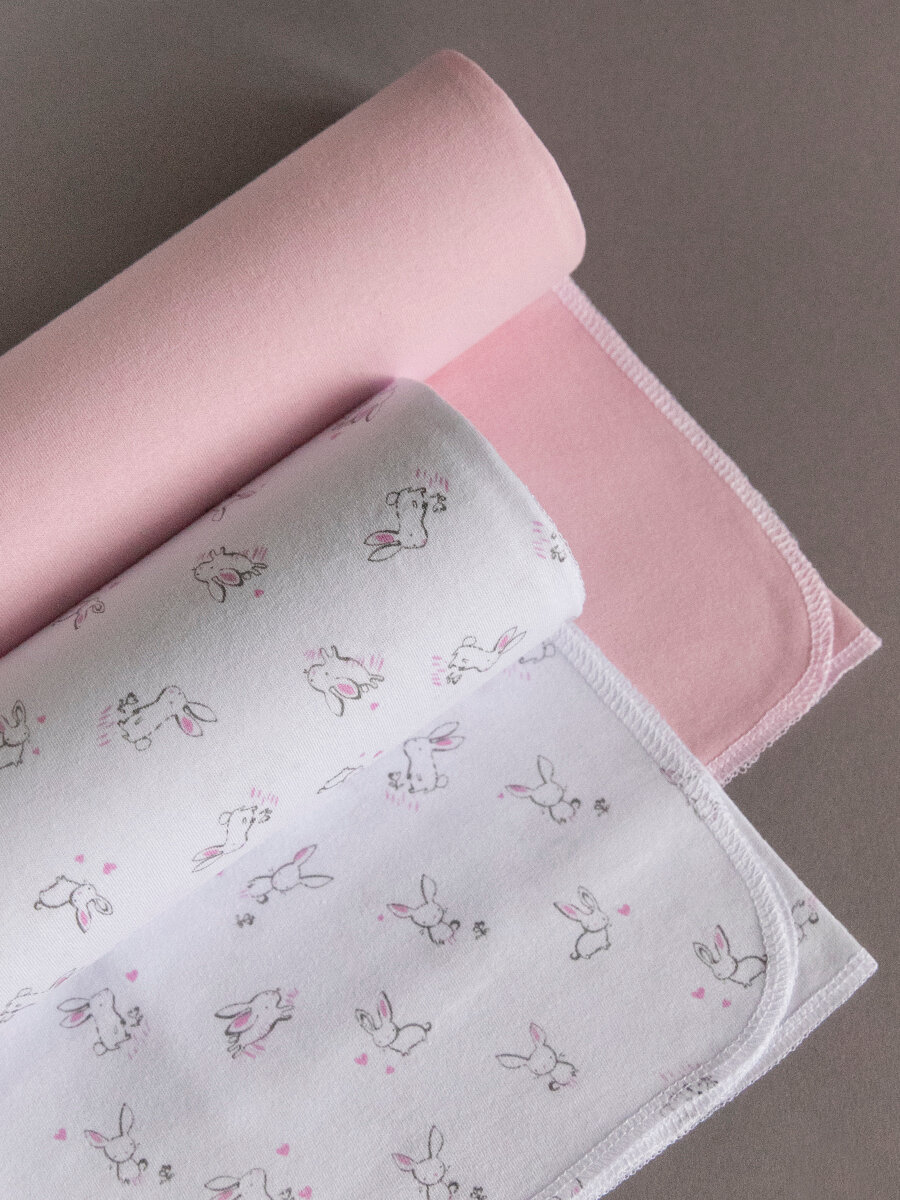 Пеленки для новорожденных хлопок трикотажные Baby Nice, 90х120, 2 шт., зайчики