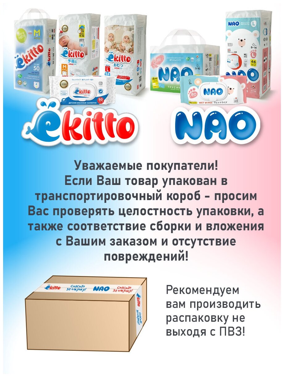 Подгузники трусики детские Ekitto Ultra Light 3 размер M для детей от 5-10 кг, ультратонкие ночные памперсы трусы для мальчиков и девочек, японские премиум, 150 шт