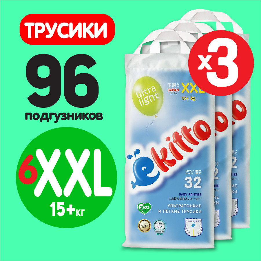 Купить Подгузники трусики 6 размер XXL детские для мальчиков девочек детей японские памперсы 3 уп по 32 шт / Ёкитто