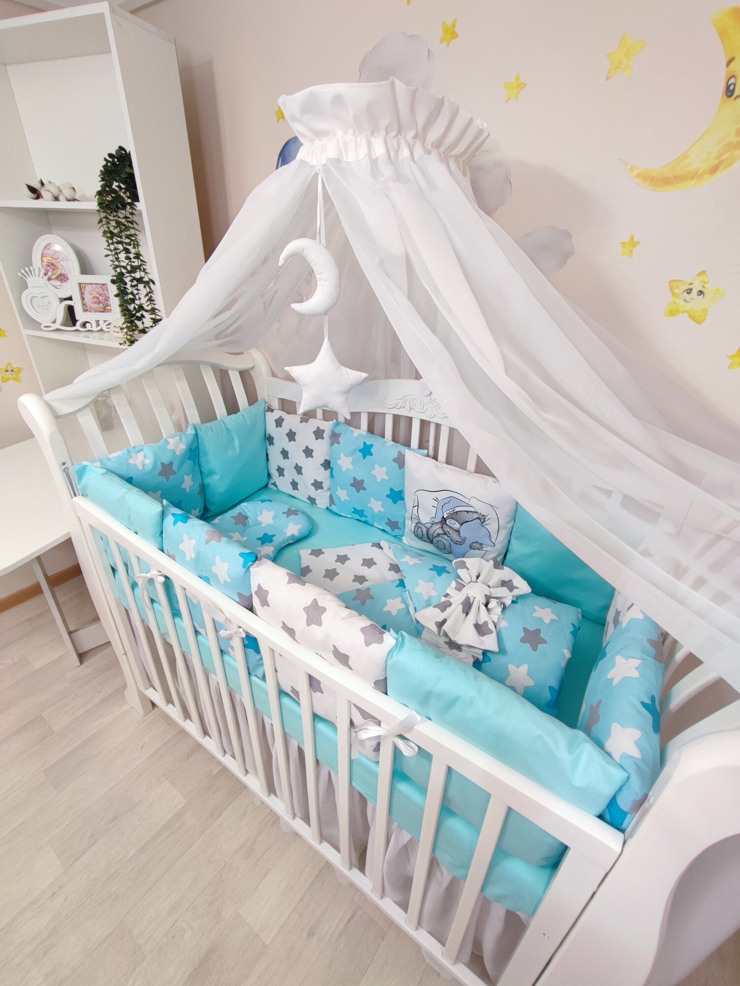 Комплект бортиков в кроватку из 16 предметов Mamdis для новорожденных и малышей со звездами