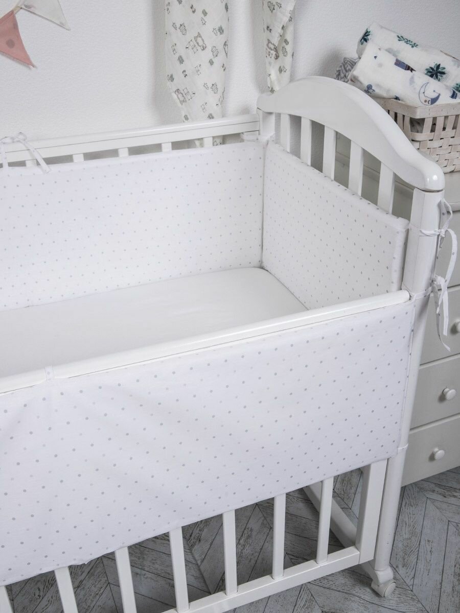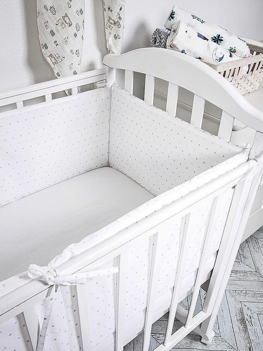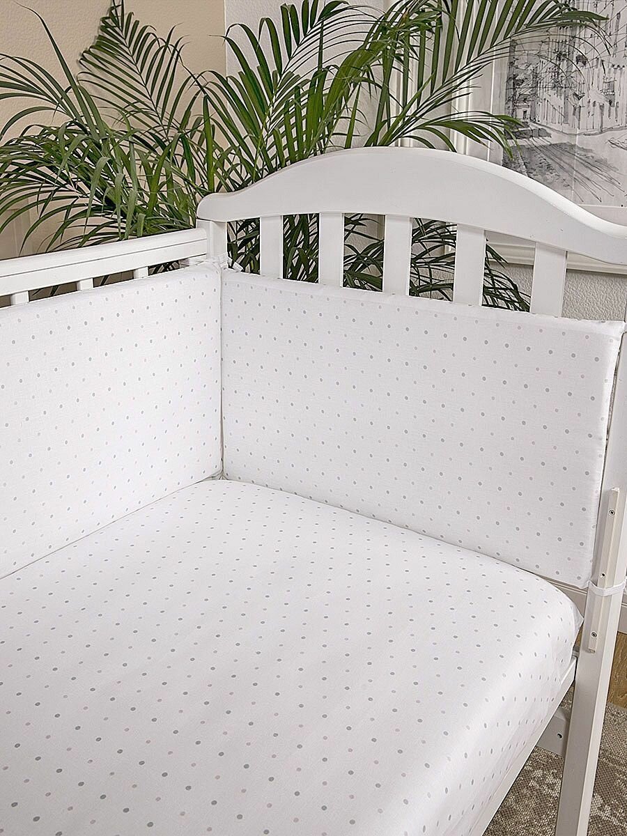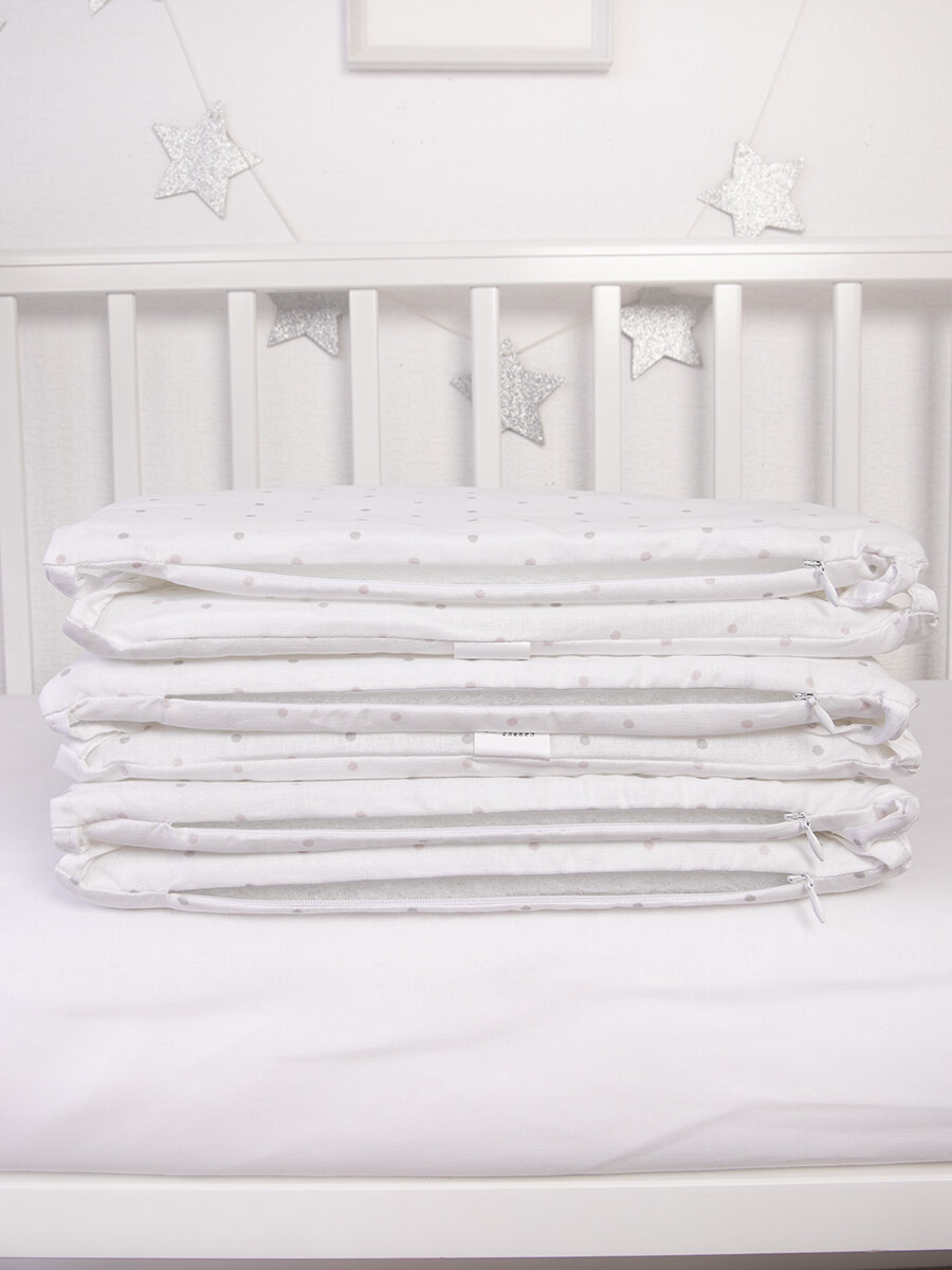 Бортики в кроватку для новорожденных Комплект 4шт. горох, серый