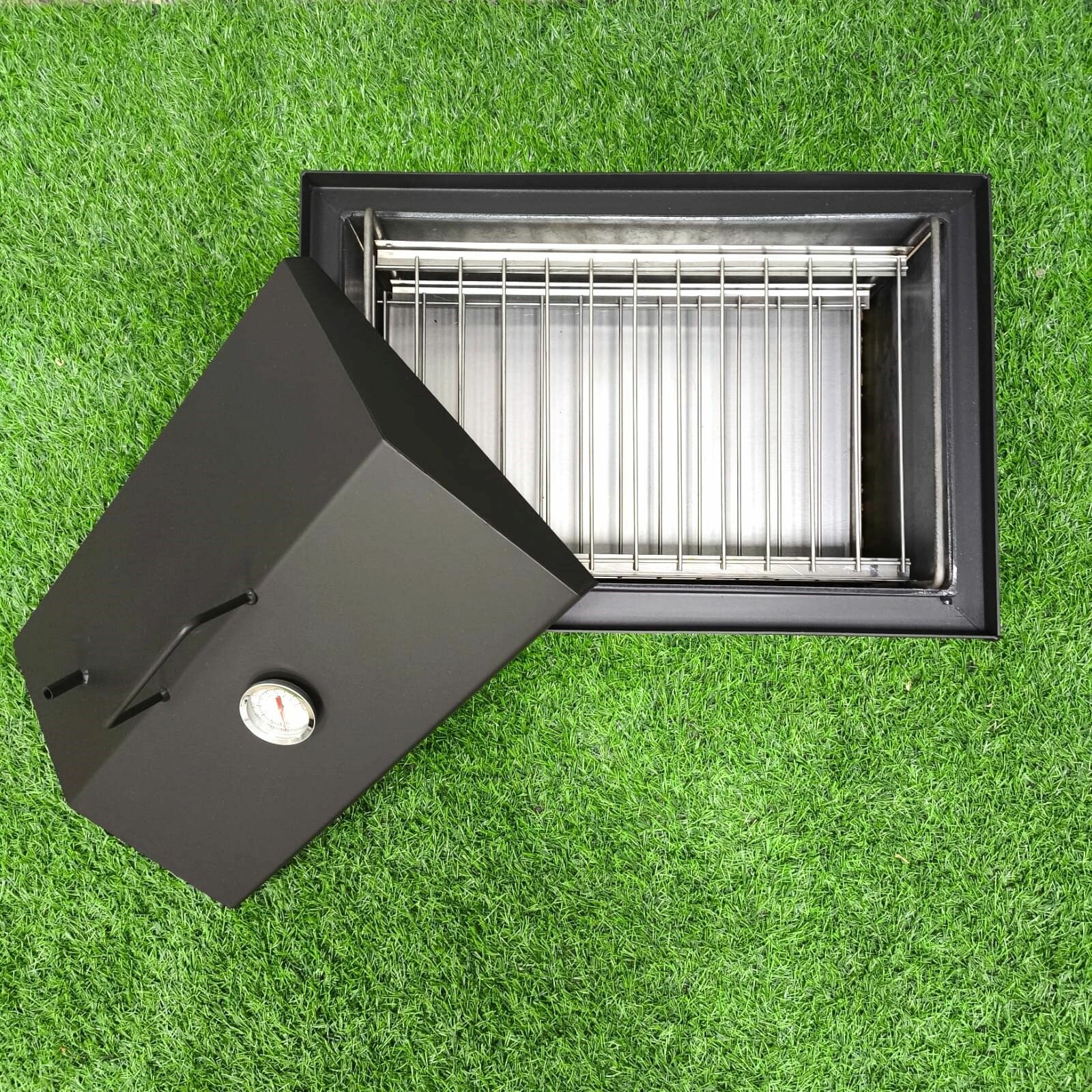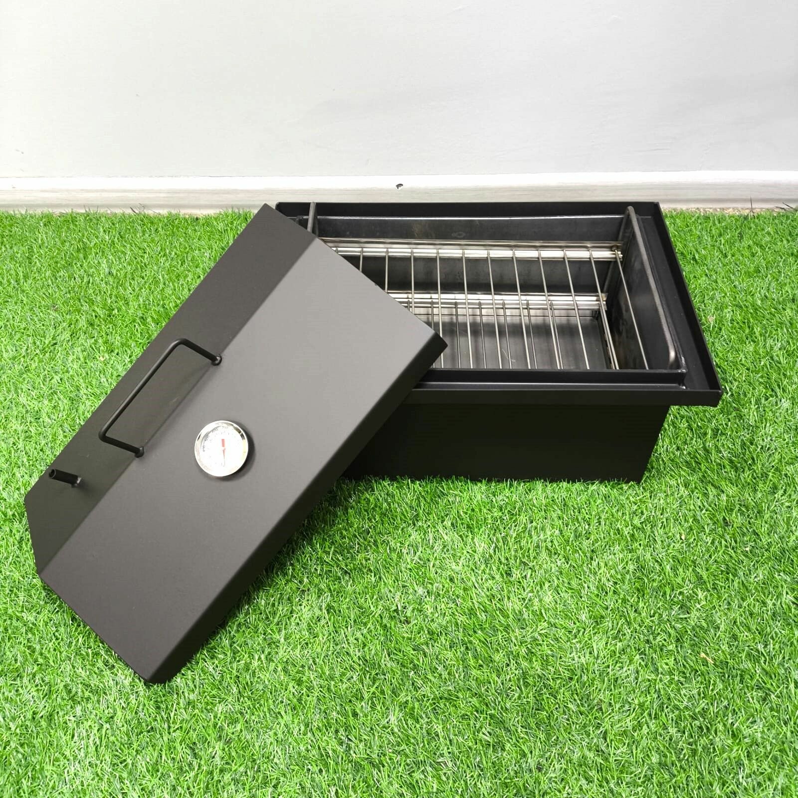 Купить Коптильня горячего копчения с термометром, сталь 2 мм, 50х25х32 см, домашняя, двухъярусная, крышка с гидрозатвором. Горячая Сталь