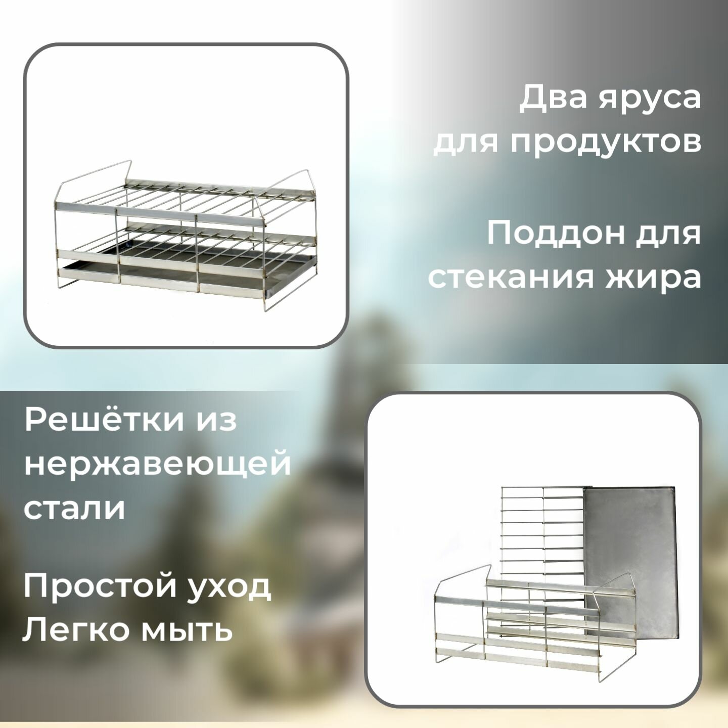 Коптильня горячего копчения, домашняя, двухъярусная, крышка с гидрозатвором, сталь 2 мм, 50х25х32 см. Горячая Сталь