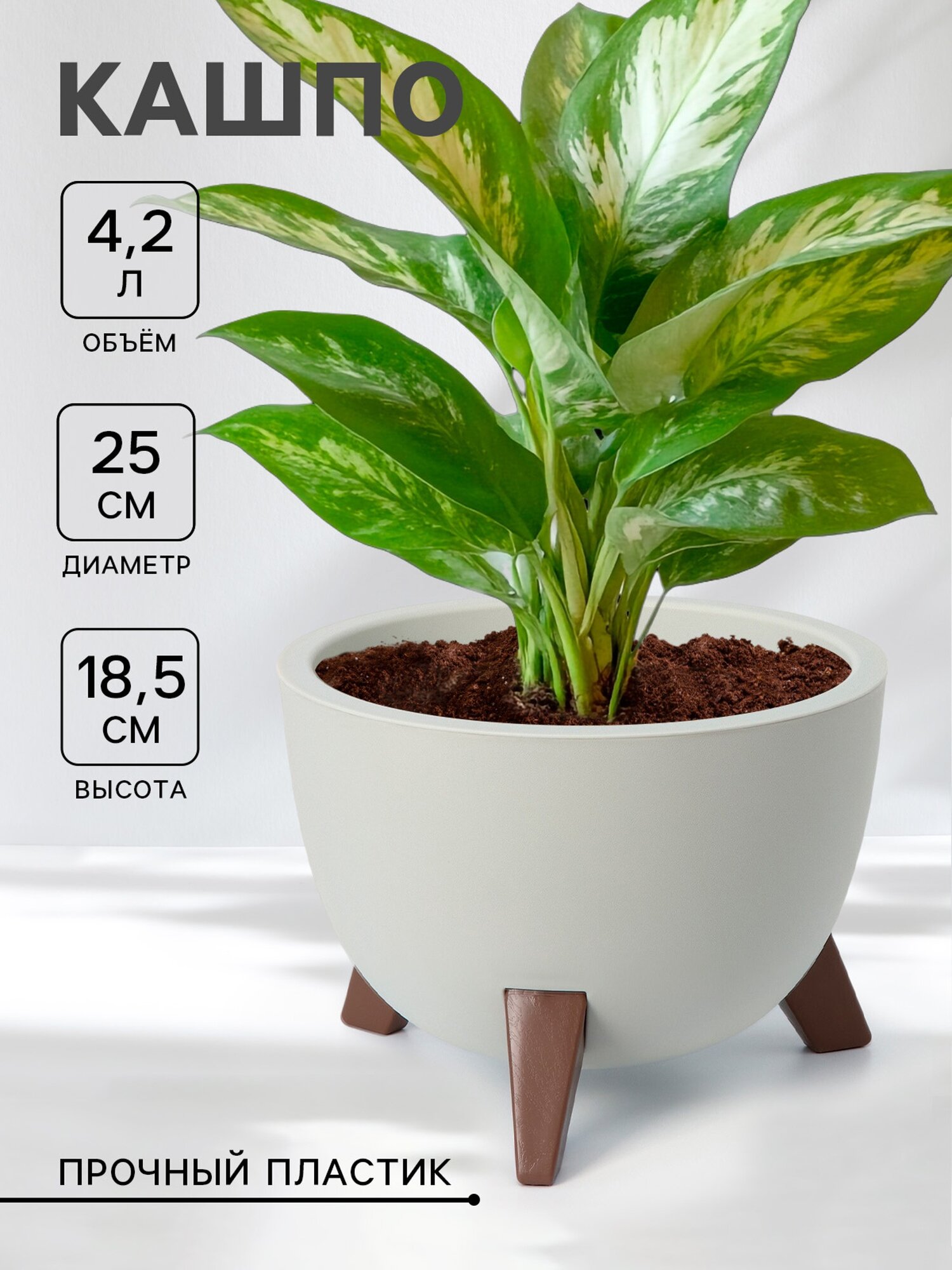 Кашпо на ножках «Флориан», 5,5 л (объём внутренней вставки 4,2 л), d=25 см, h=18,5 см, цвет белый ротанг