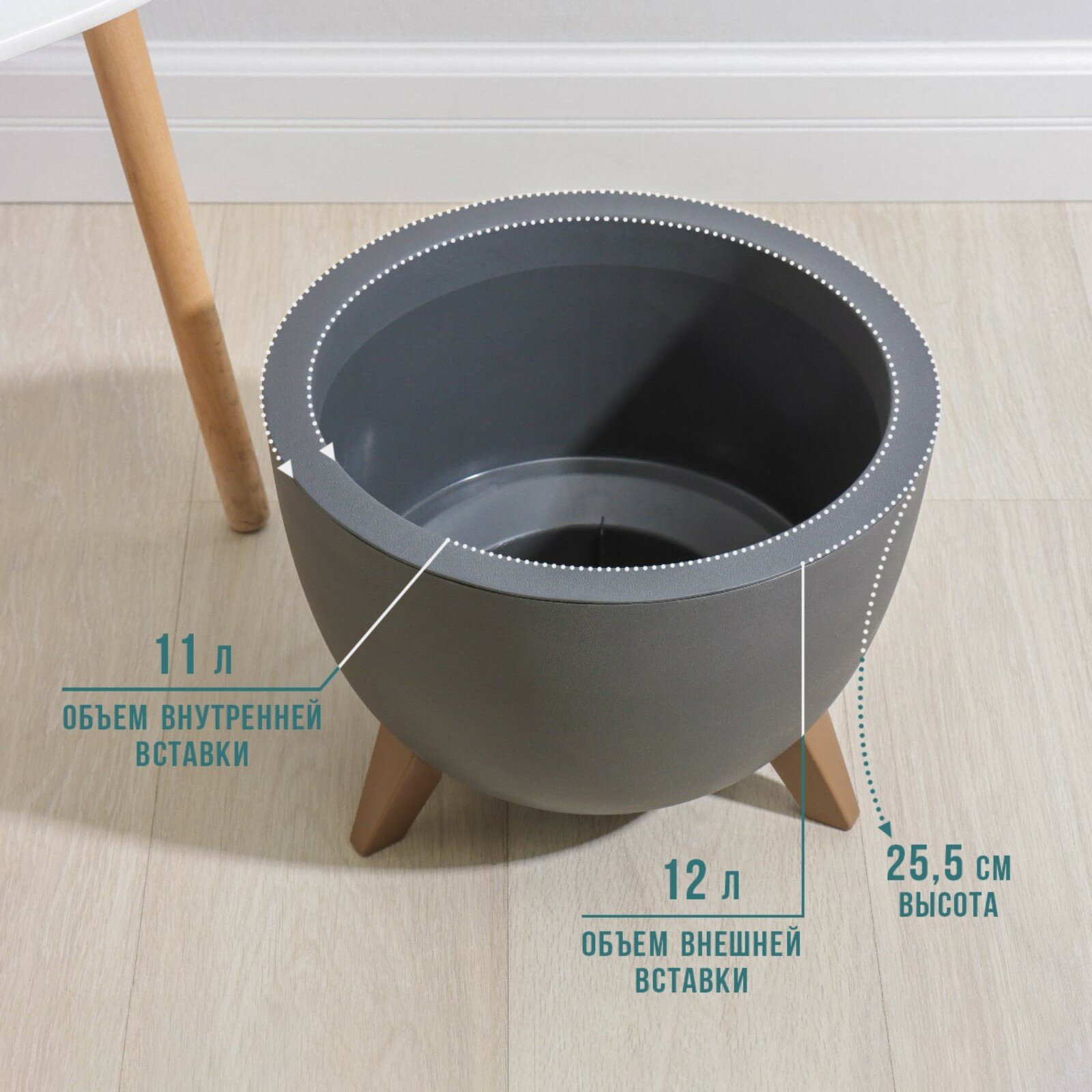 Кашпо Idea, графитовый, 25,5 см х 35 см, на ножках 12л