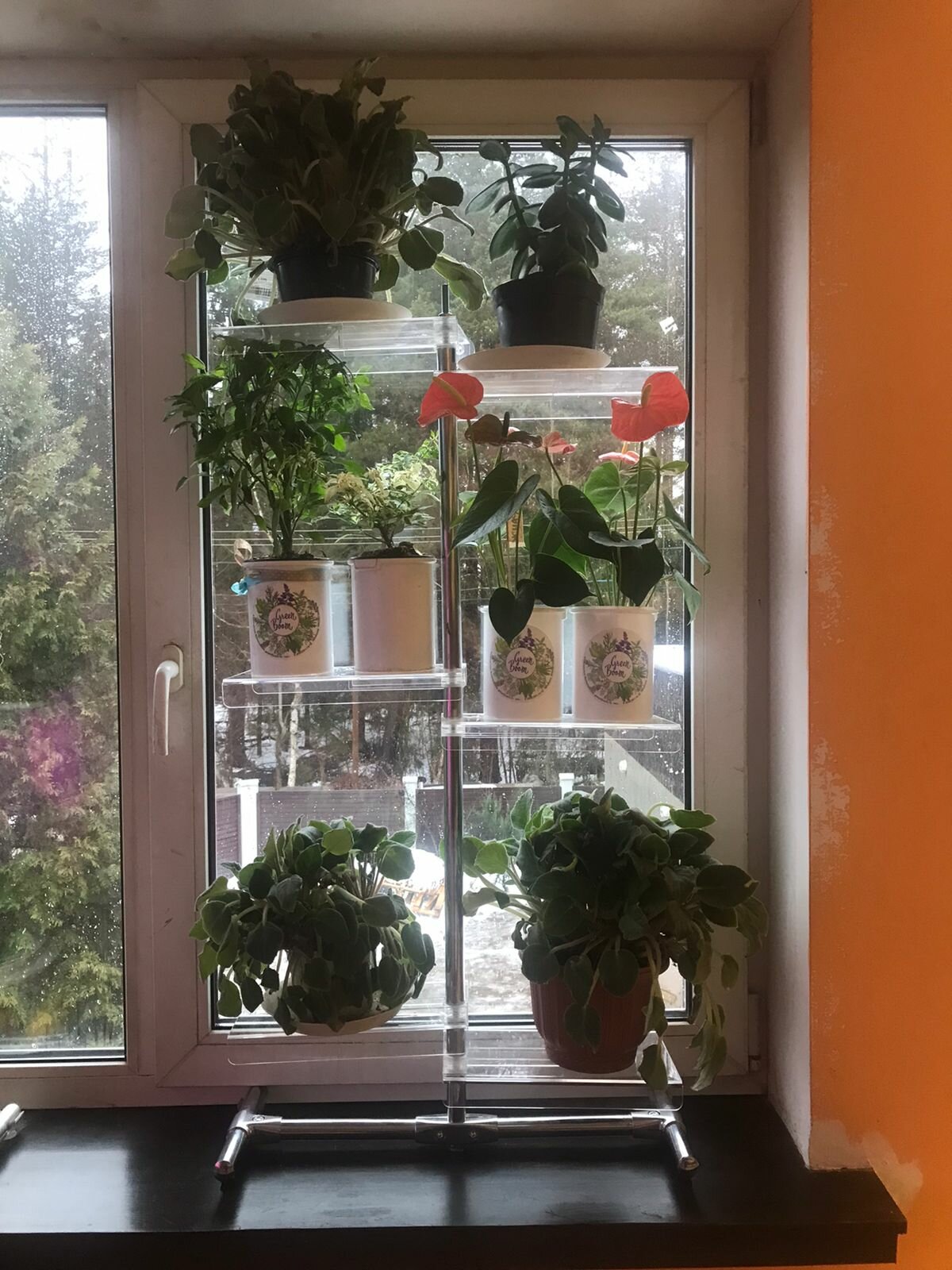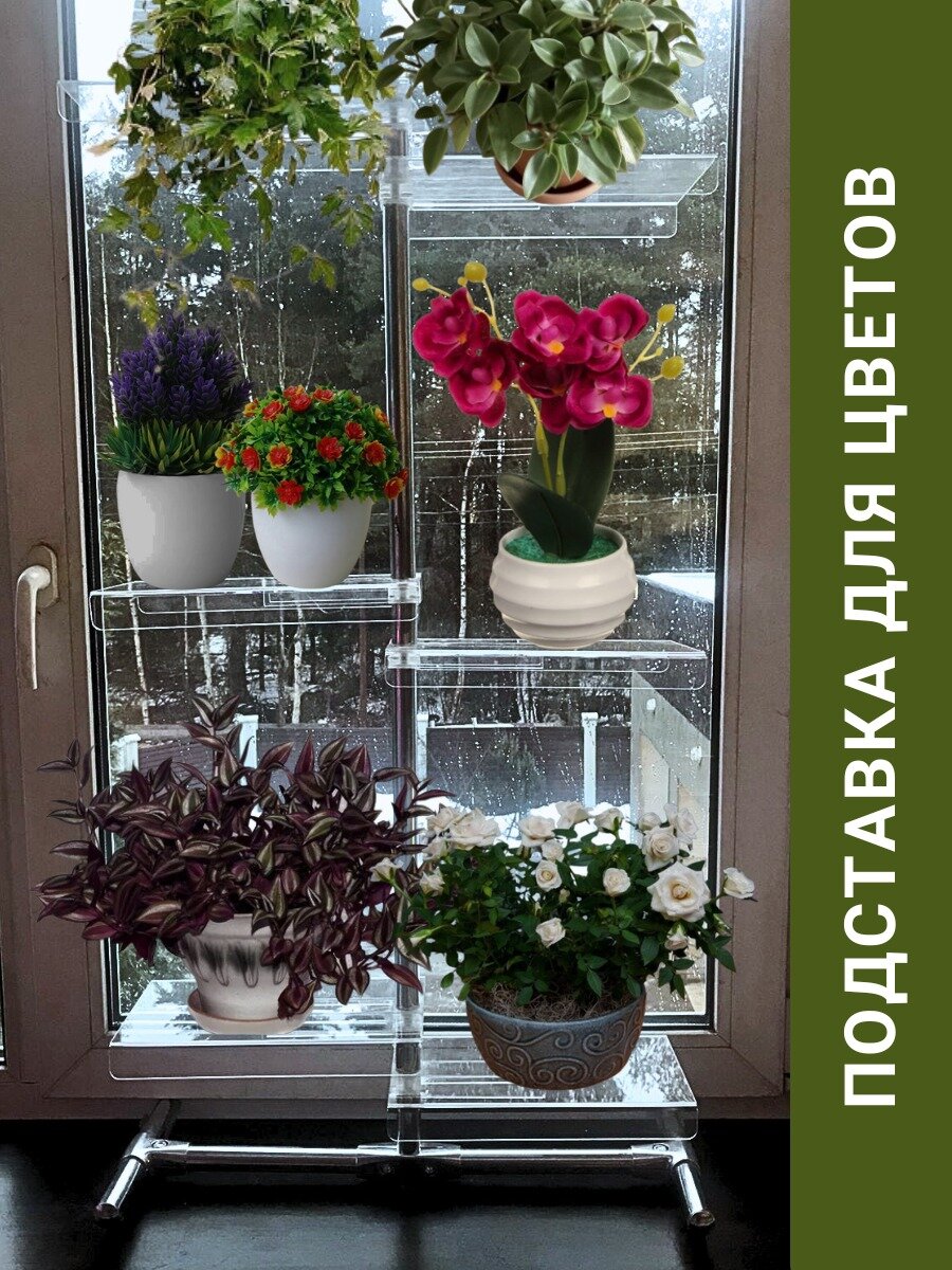 Подставка для цветов на окно 6 полок из оргстекла с присоской к стеклу интересное: