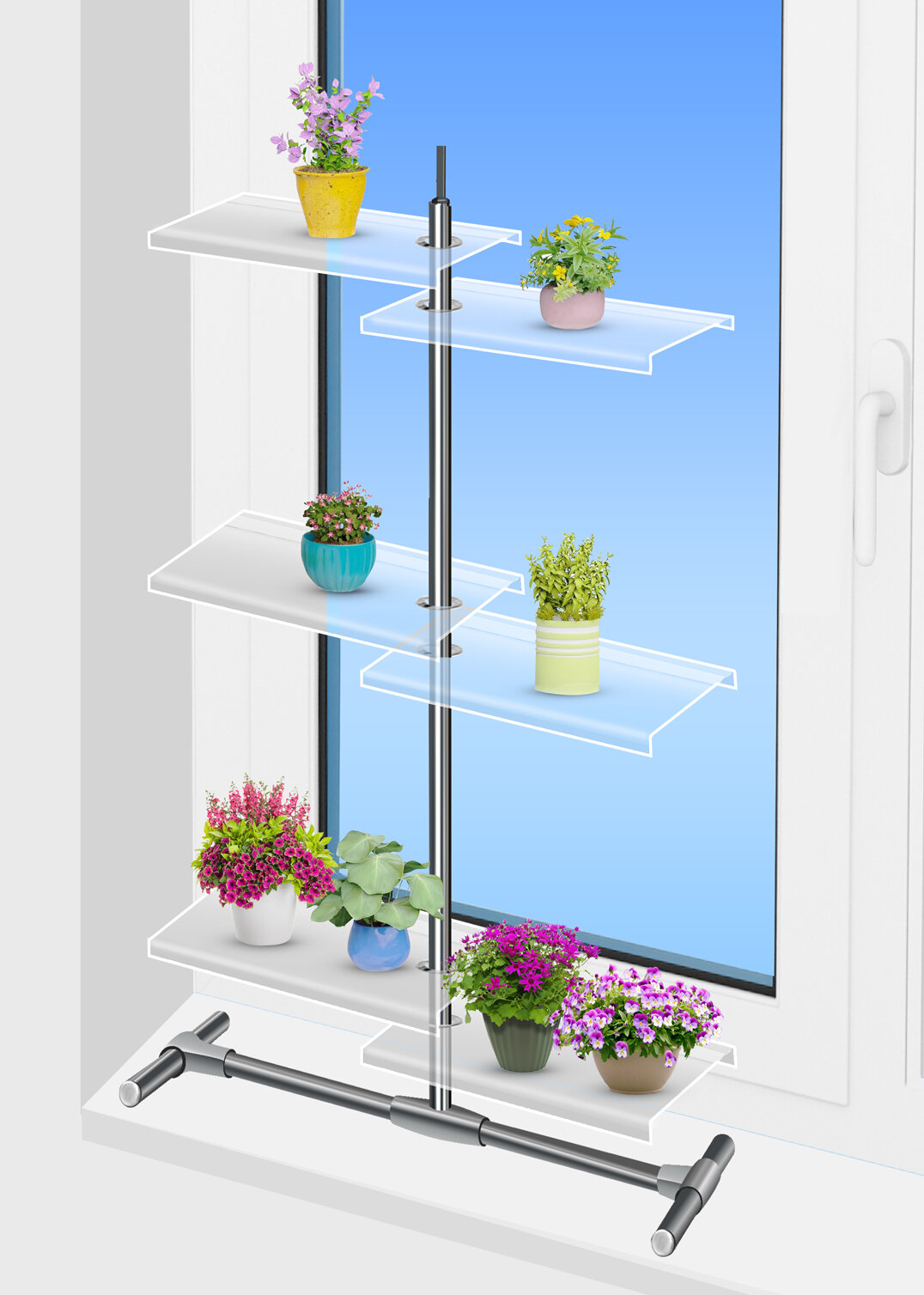Купить Подставка для цветов на окно 6 полок из оргстекла с присоской к стеклу