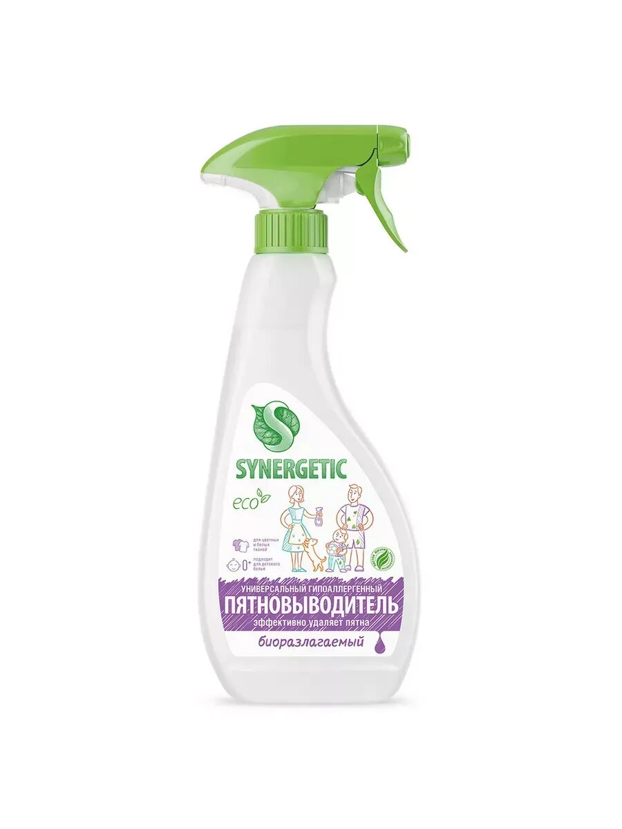 Пятновыводитель спрей для предварительной обработки пятен SYNERGETIC 0,5 л гипоаллергенный, эко, универсальный, для цветного белья, детский, без запаха