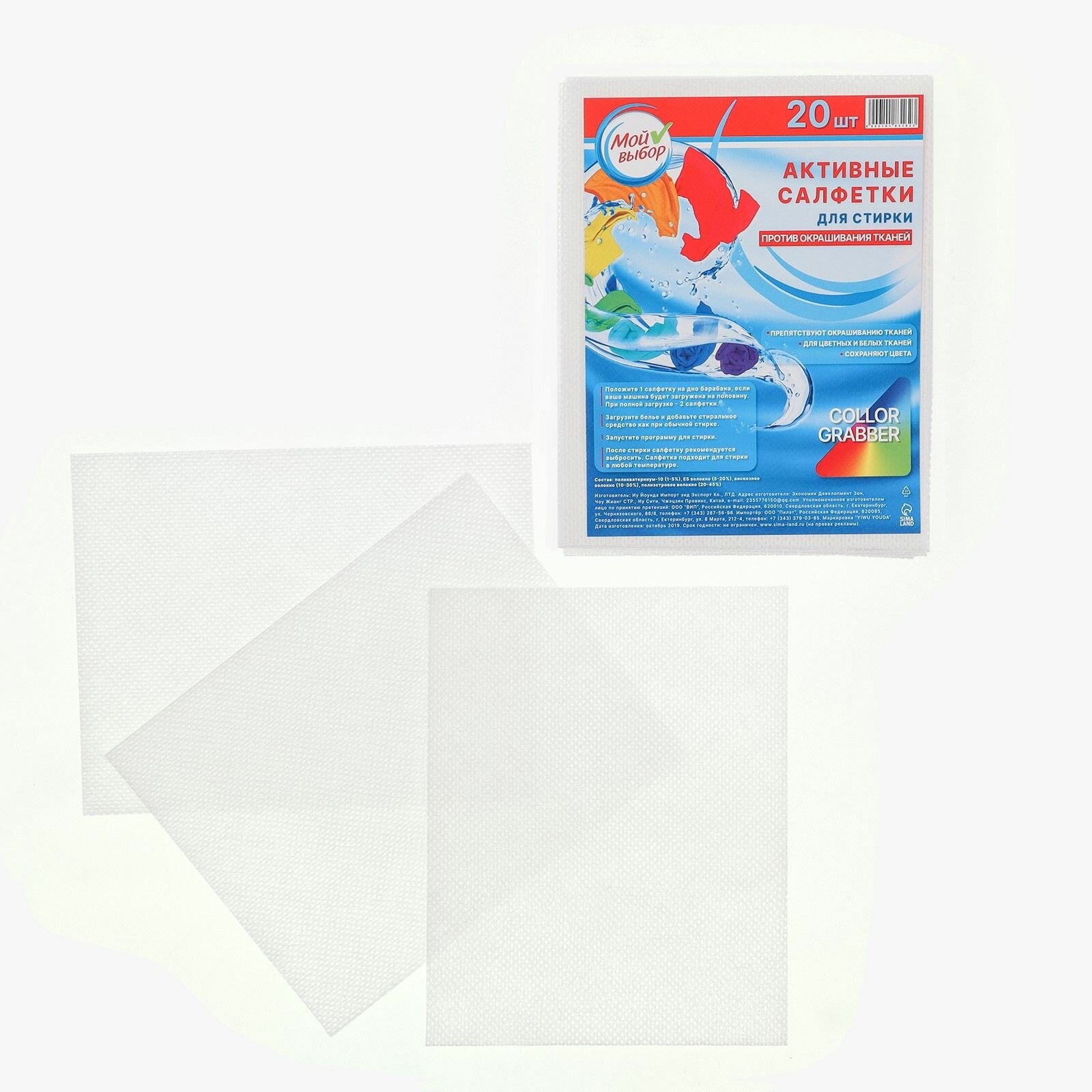 Салфетка для стирки против окрашивания тканей, МОЙ выбор, 20 шт