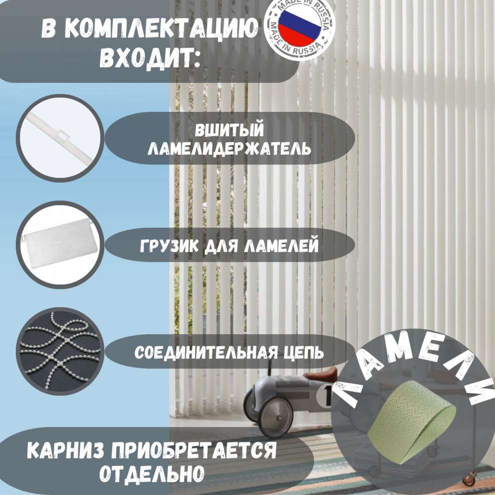 | Комплектация | Ламели,грузики,петли,соединительнная цепочка |