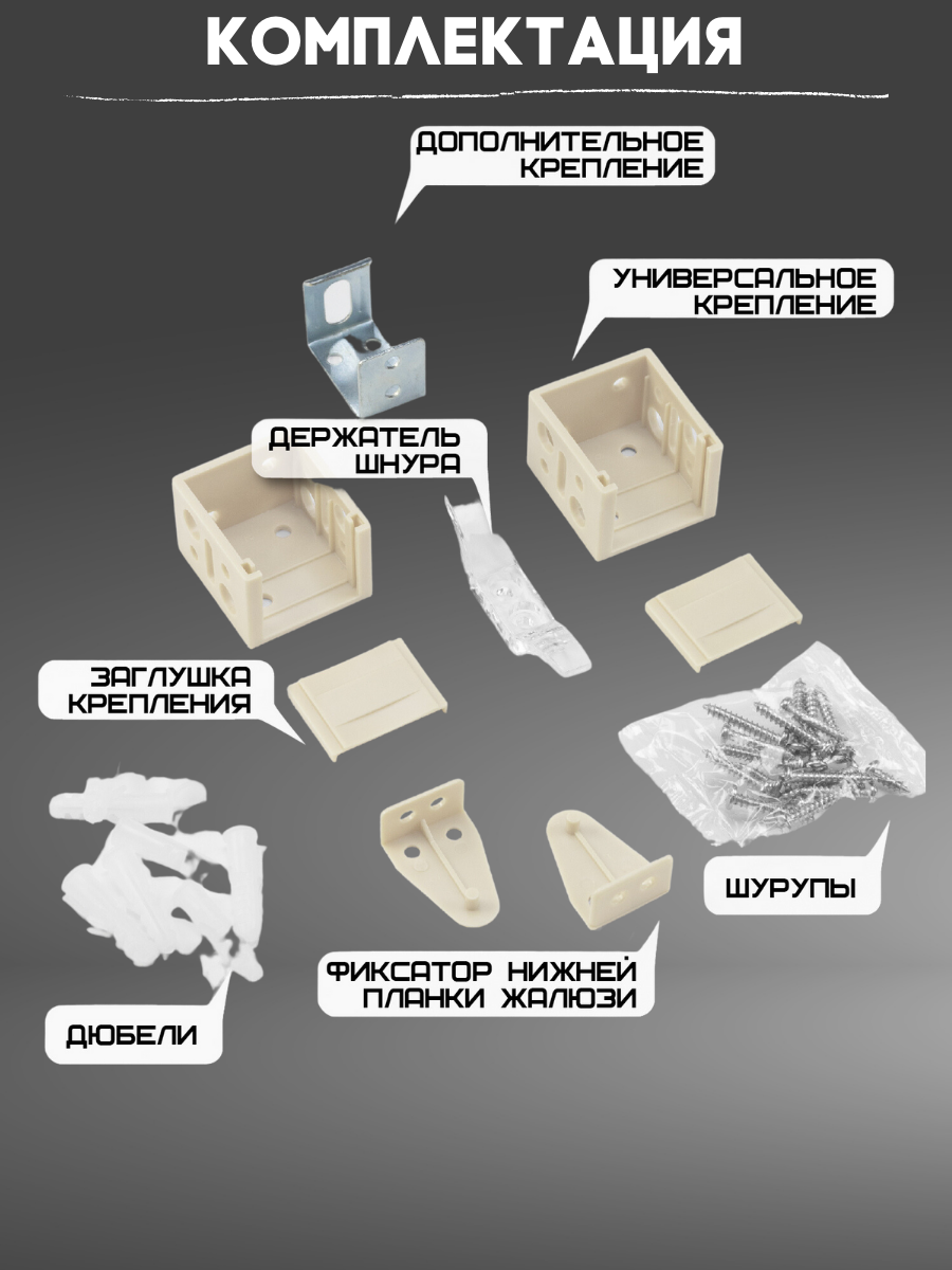 | Комплектация | жалюзи, крепежный комплект |