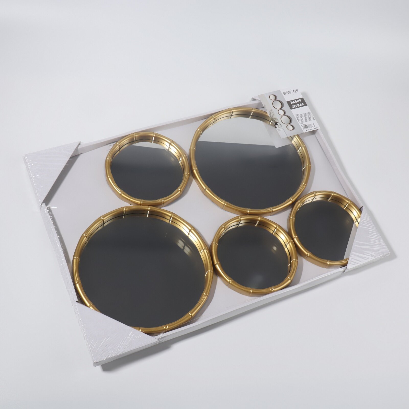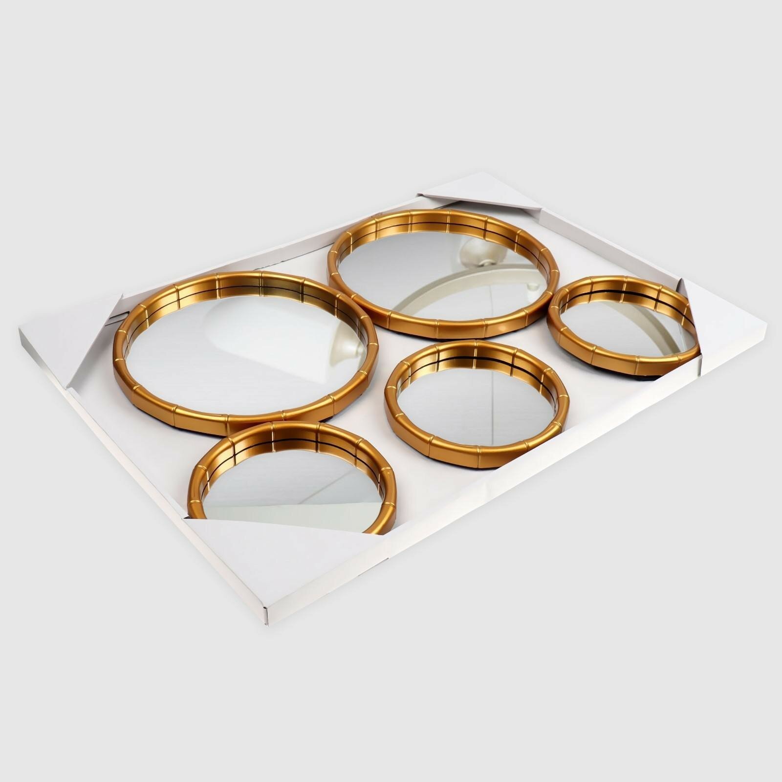 Настенные зеркала Бамбук, набор - 5 шт, d зеркальной поверхности 20,5/13 см, цвет золотистый QF 69 .