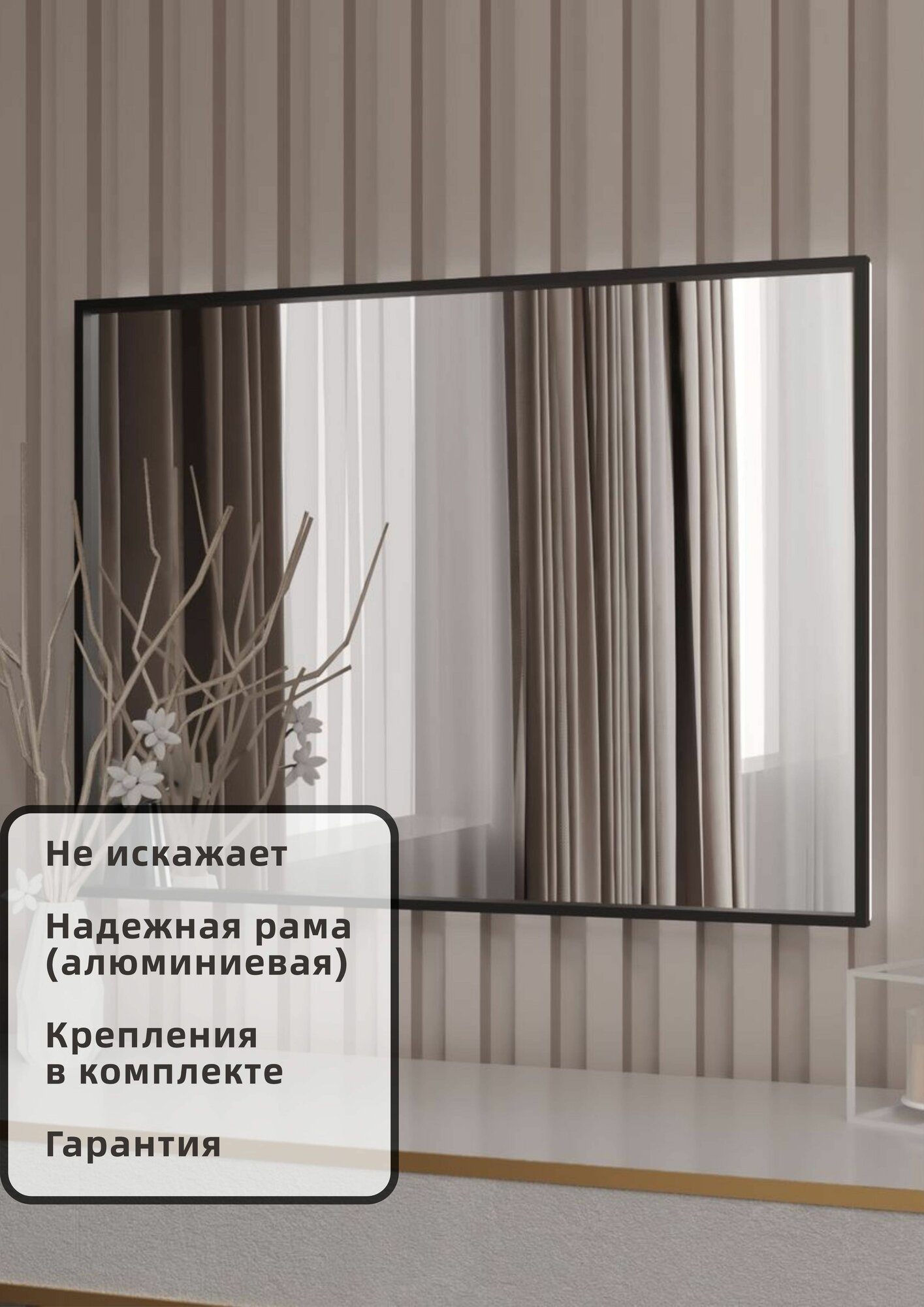 Зеркало настенное интерьерное в черной раме в ванную / в прихожую серии "MERIDA" 80 х 60 см.