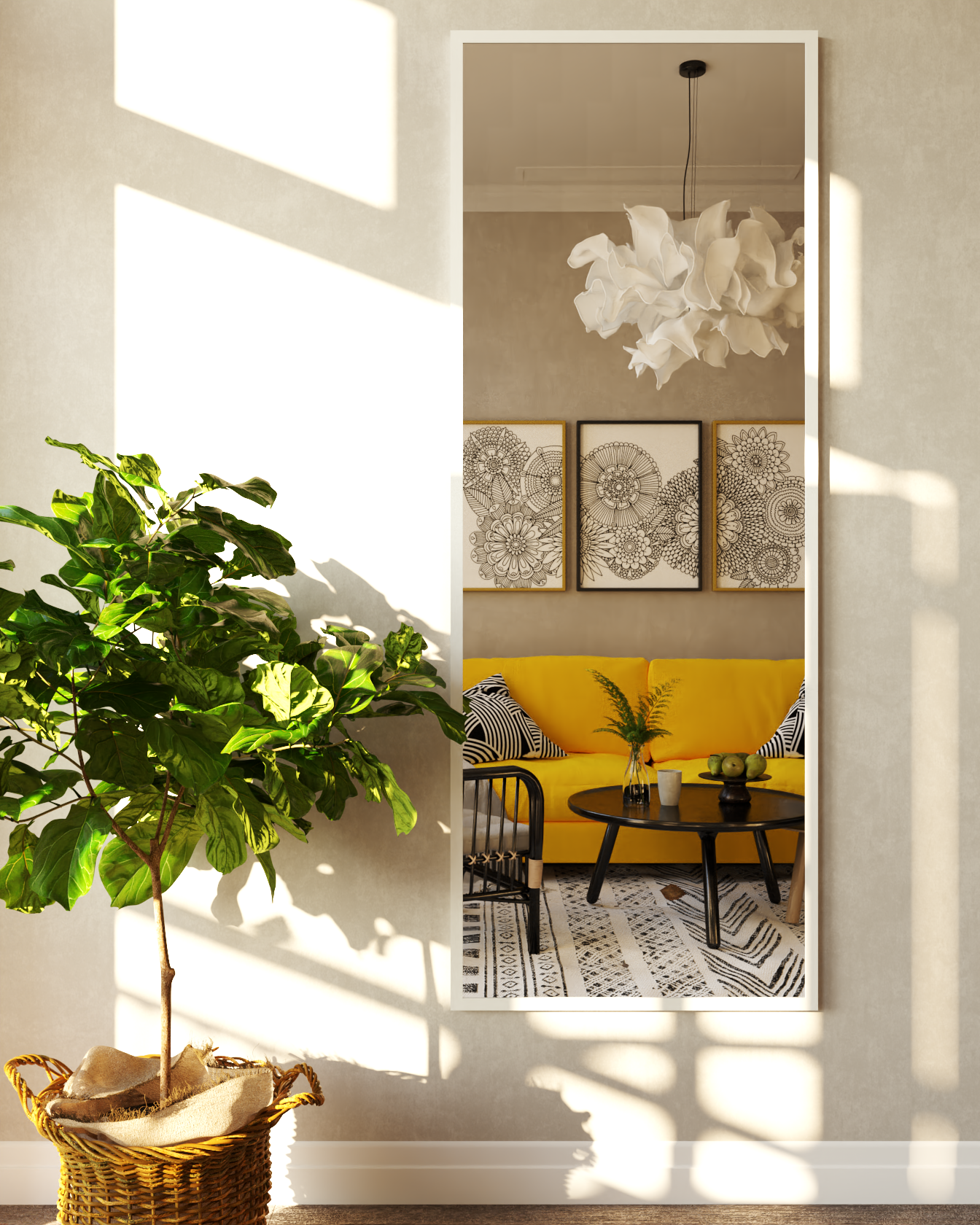 Зеркало настенное интерьерное в прихожую в полный рост 180х60 в раме белое