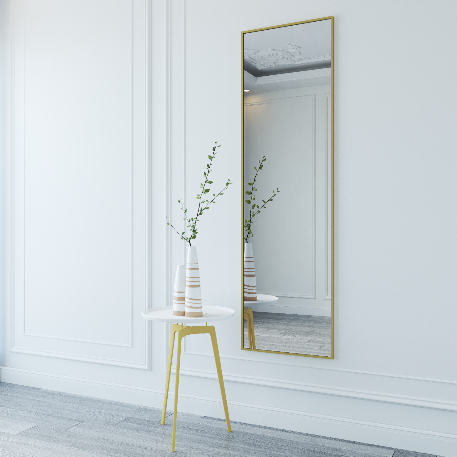 Купить Зеркало настенное, 170х50, в прихожую, золотое, в раме, квадра, прямоугольное