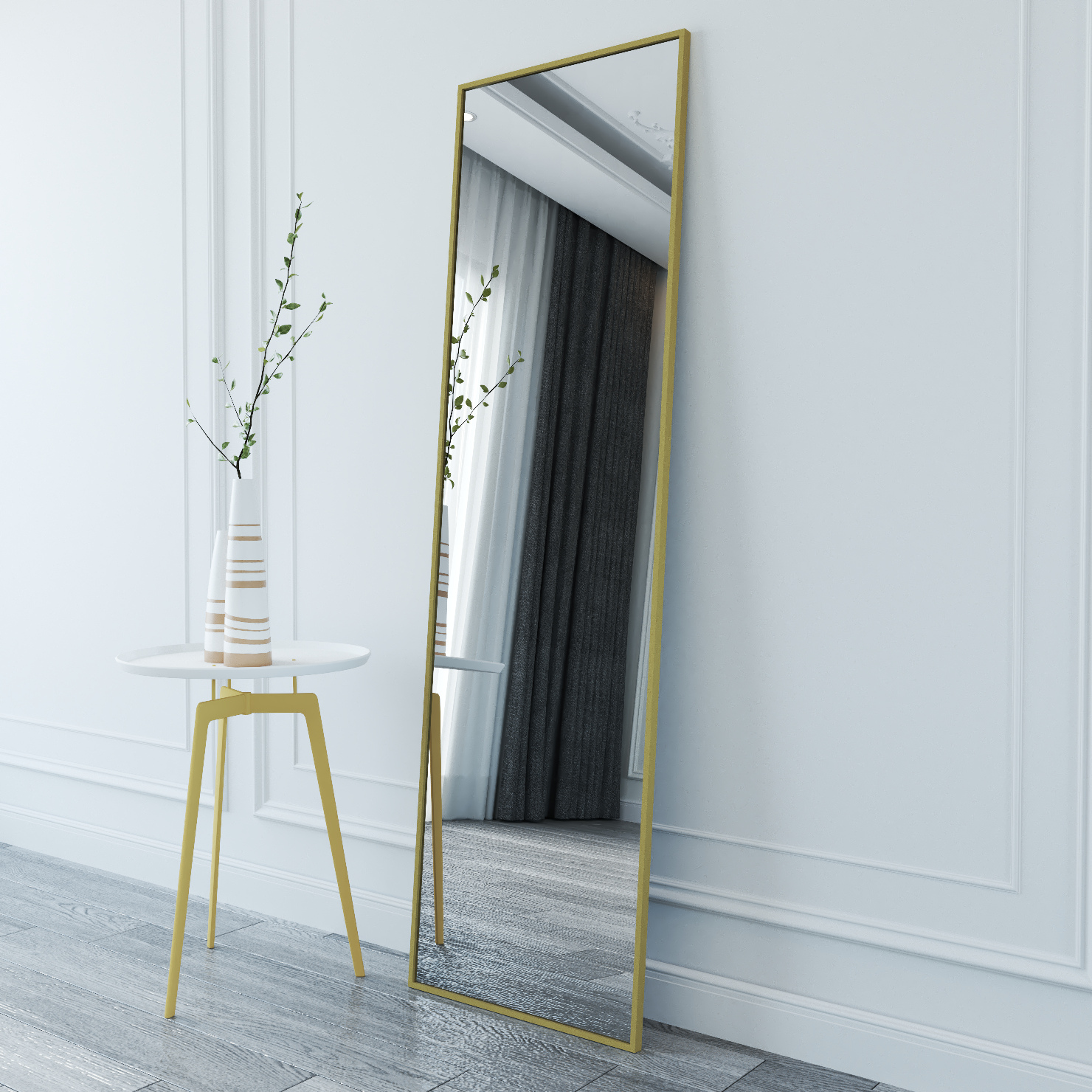 Зеркало настенное интерьерное в золотой раме 180х60 квадра