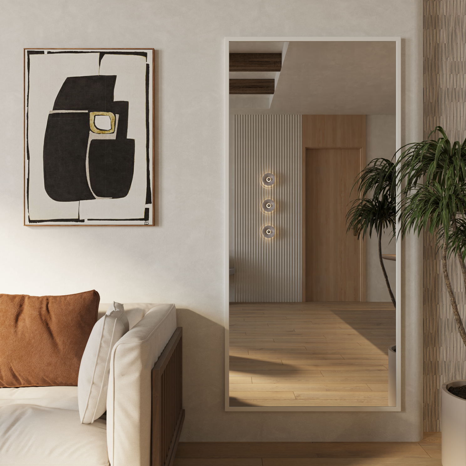 Зеркало настенное интерьерное в прихожую в полный рост 180х60 в раме белое
