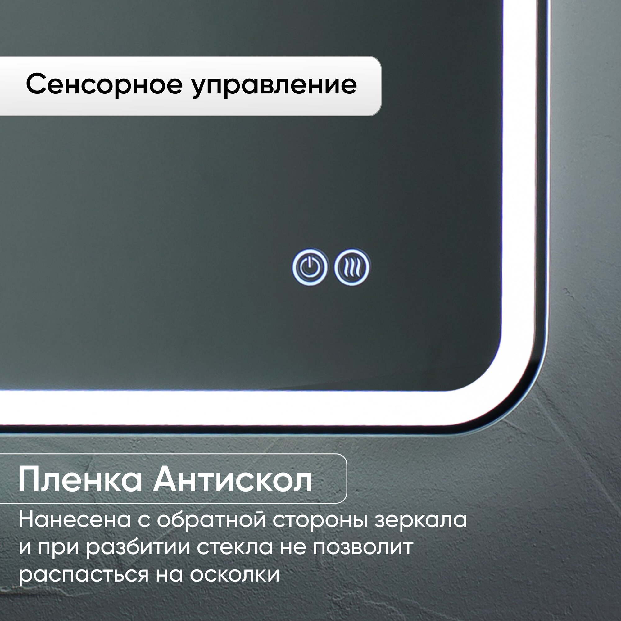 Купить Зеркало настенное в ванную с подсветкой и подогревом Milan 80*60 см (сенсорное управлением, прямоугольное зеркало для ванной, холодная подсветка 6000К)