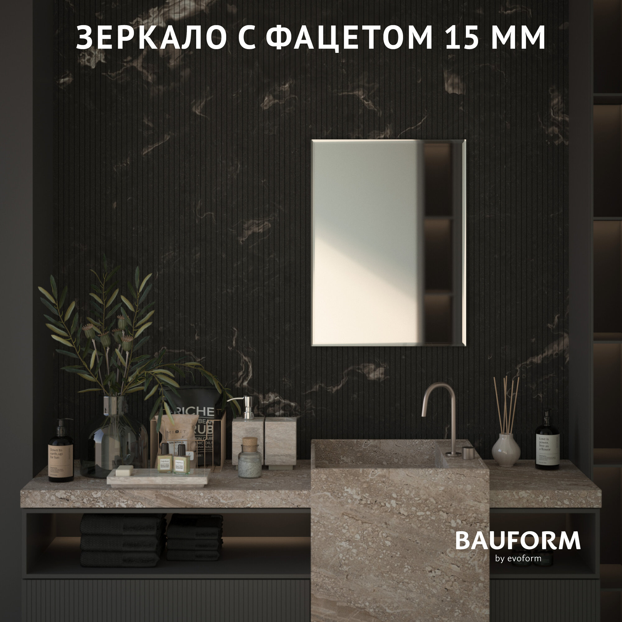 Купить Зеркало настенное Прямоугольное с фацетом FACET 15 BAUFORM 60х80 см, для гостиной, прихожей, спальни, кабинета и ванной комнаты, SP 9081