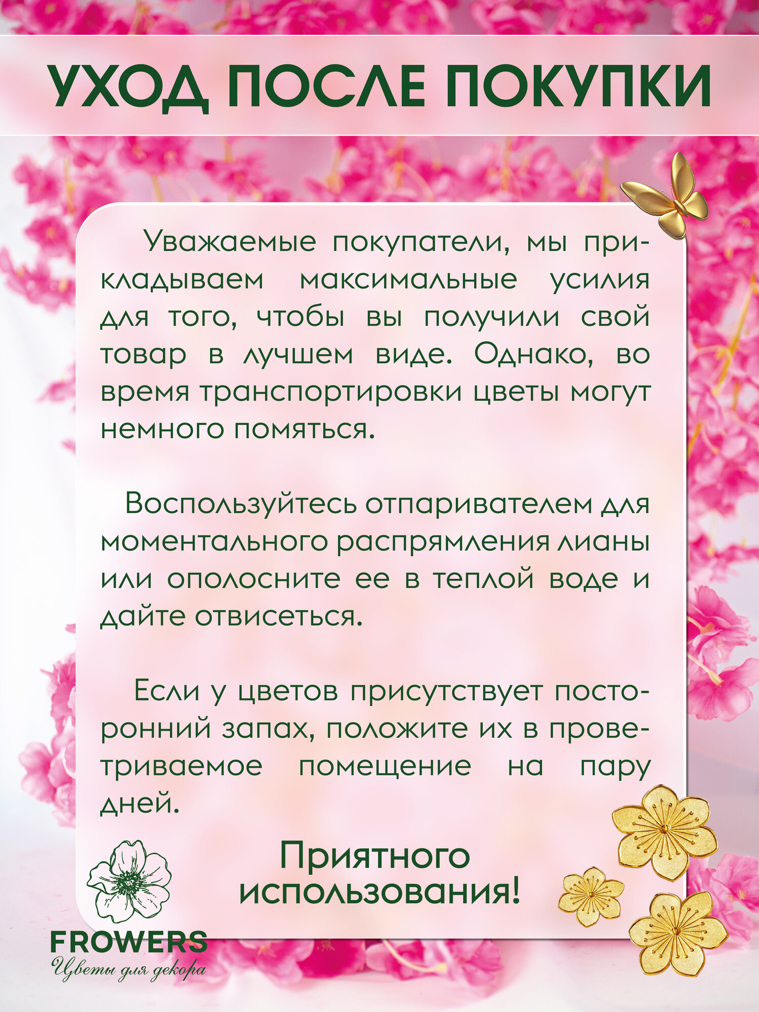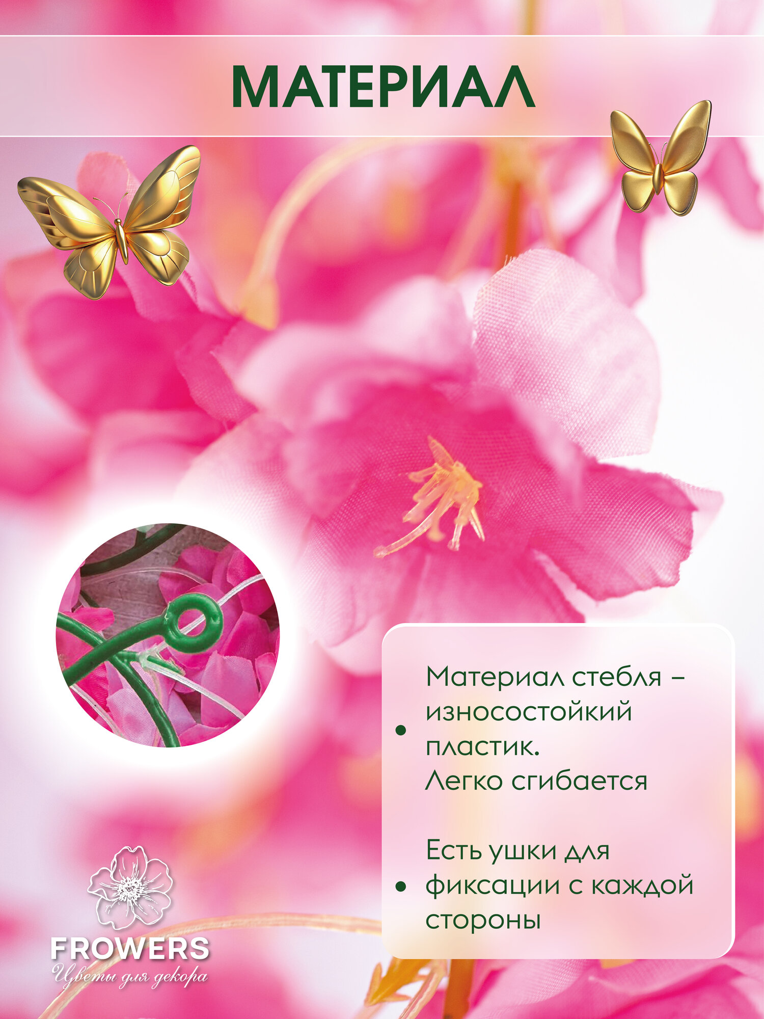 | Дополнительная информация | Лиана имеет длину 180 см и 135 соцветий, выполненных с максимальной приближенностью к натуральной сакуре |