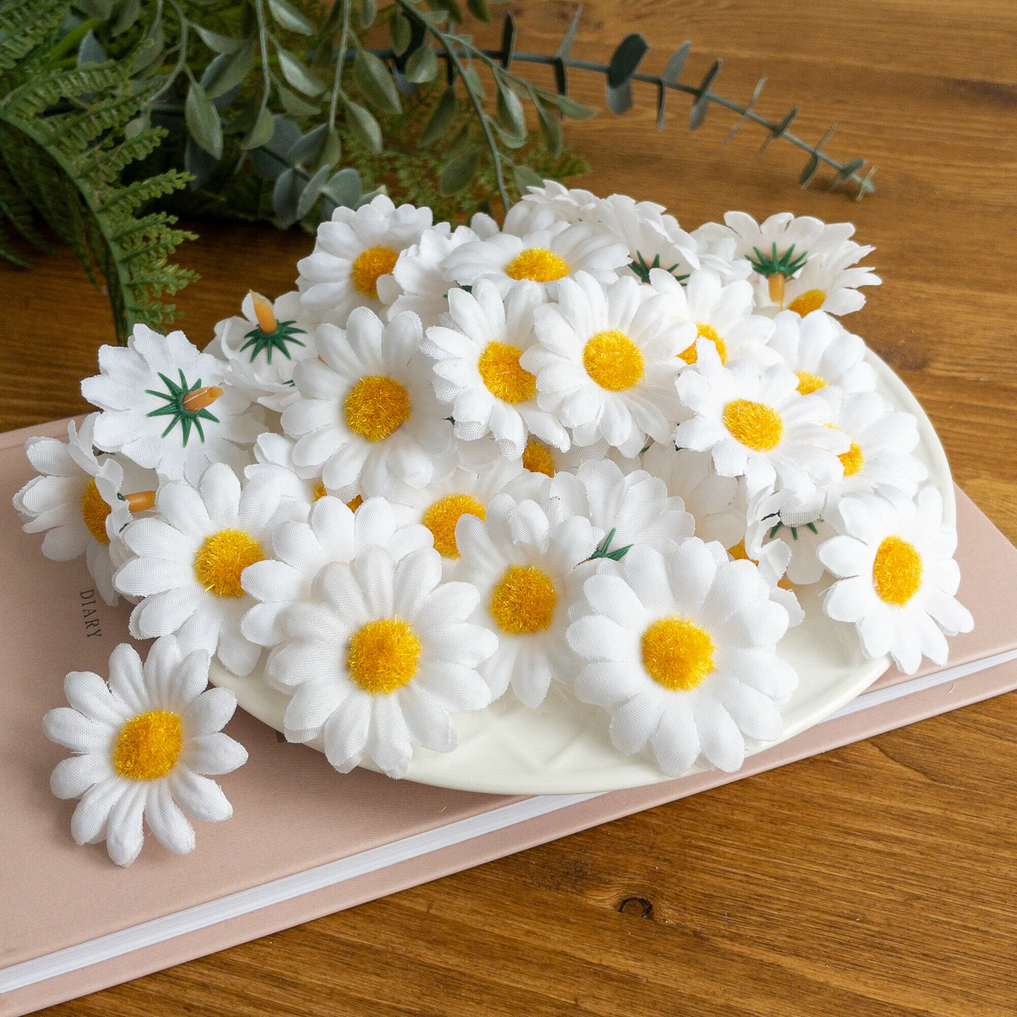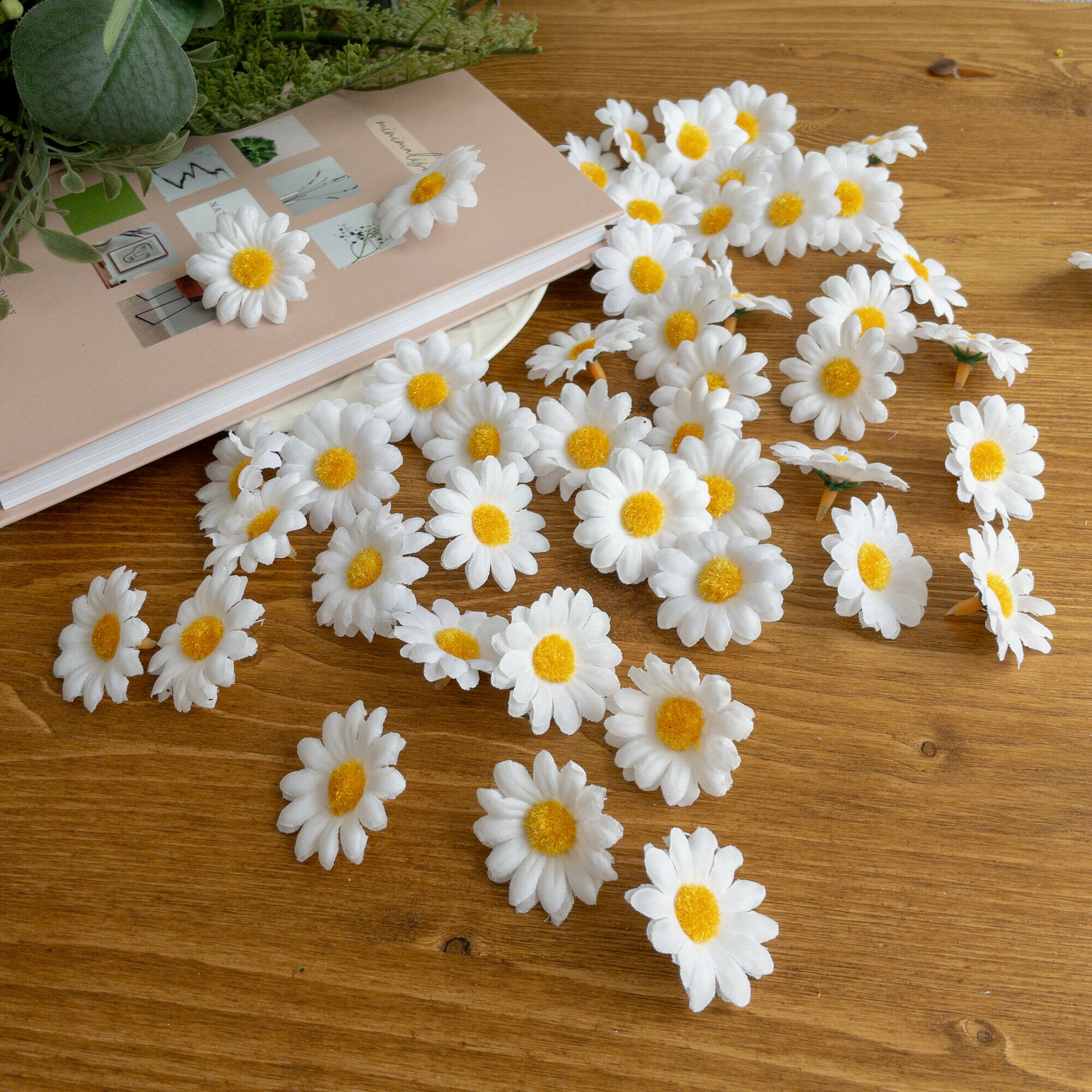 Ромашки искусственные, луговые, белые, цветочек - 4 см, в наборе 48-50 шт