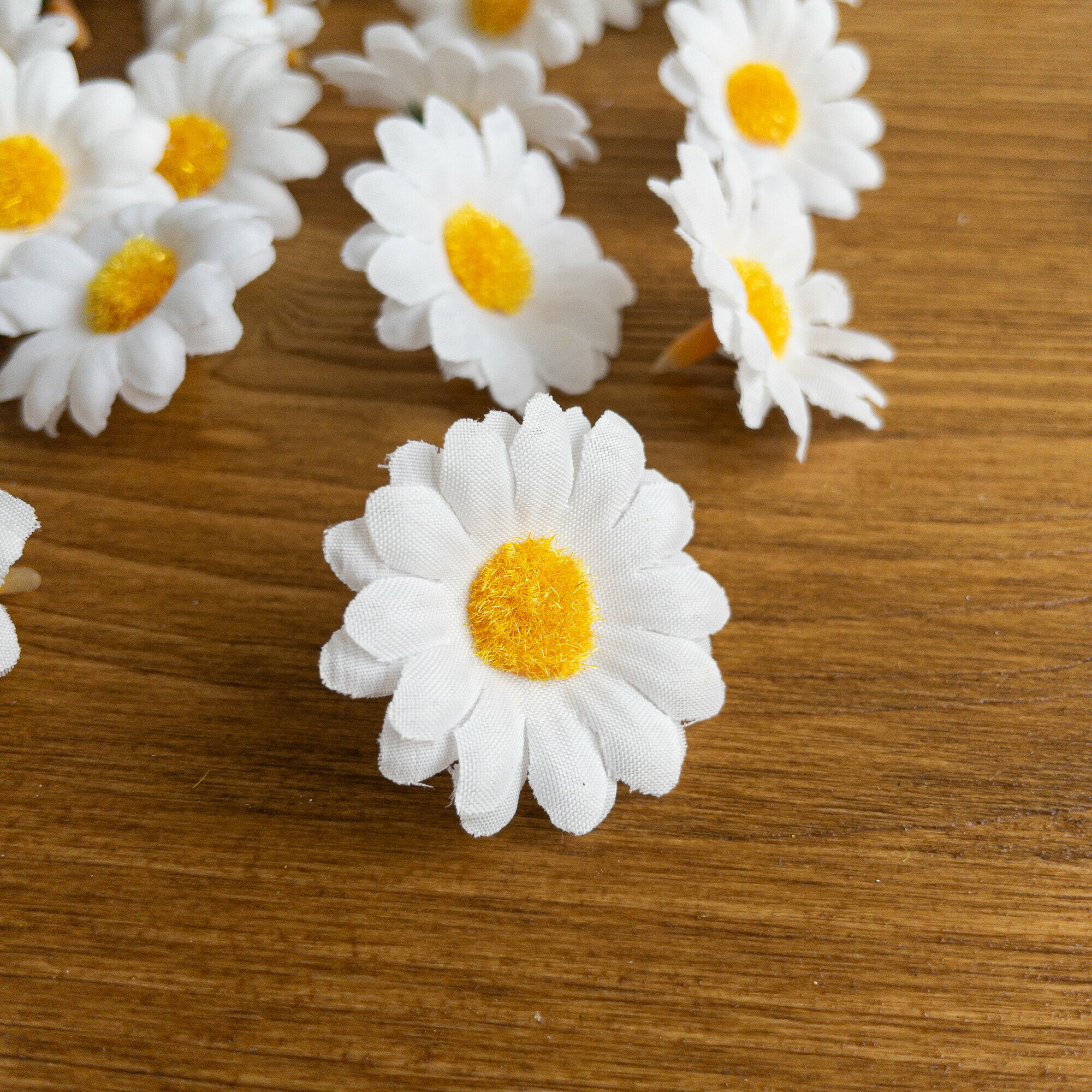 Купить Ромашки искусственные, луговые, белые, цветочек - 4 см, в наборе 45-50 шт