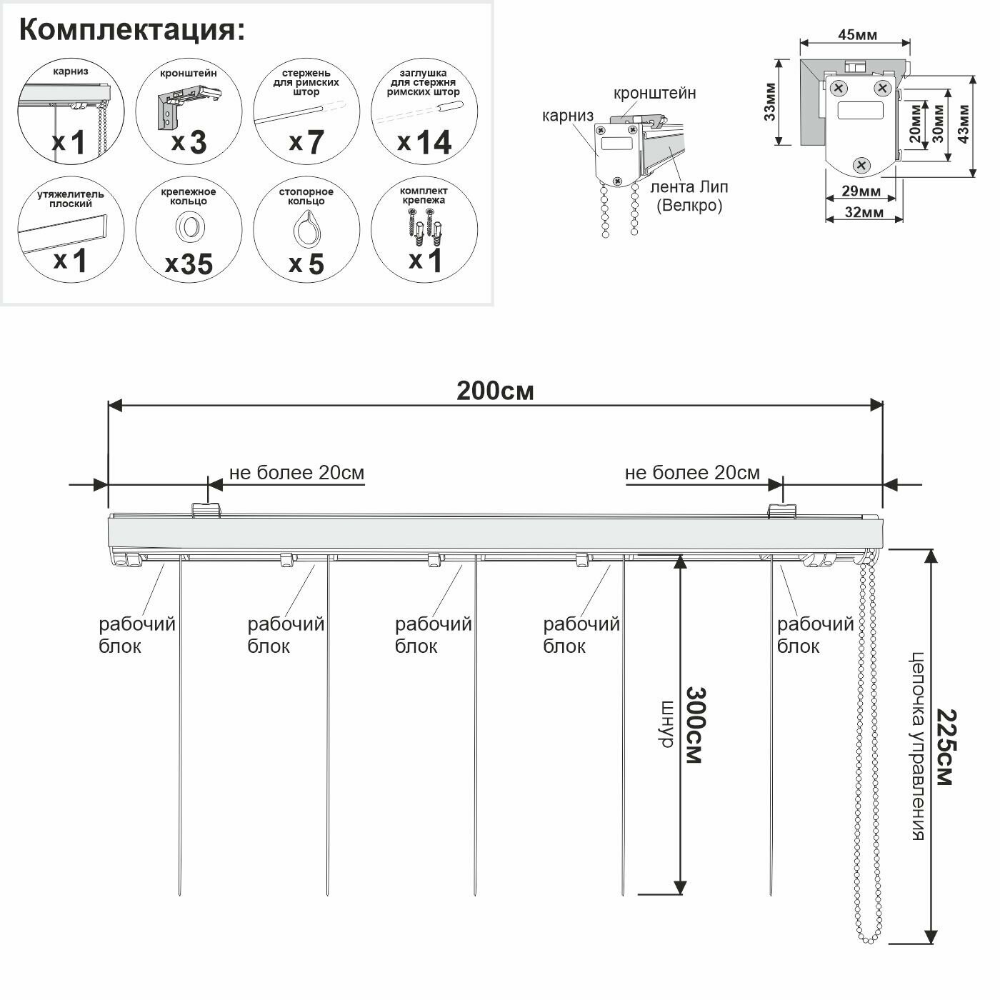 | Комплектация | Карниз - 1шт; Комплект стержней и креплений - 1шт |