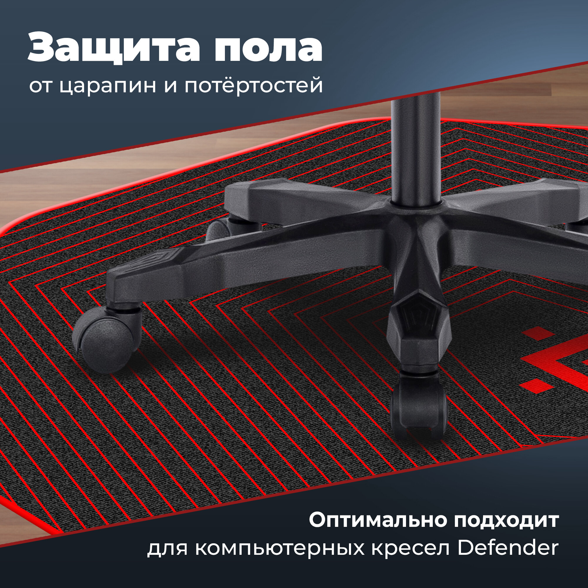 Напольный защитный игровой ковер DEFENDER Motion, коврик с ярким геймерским дизайном, 1155х1345х4мм. Цвет: черный