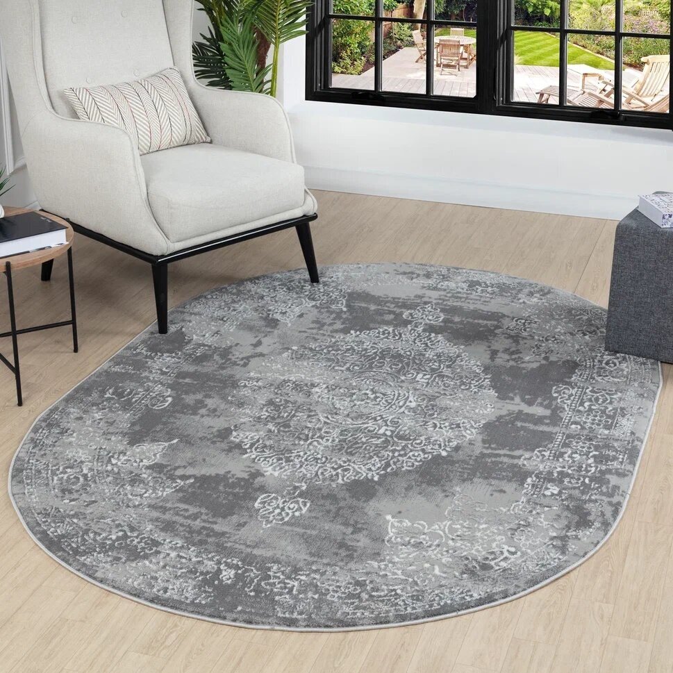 Купить Ковер на пол овальный 80 на 150, серый, современный, Турция, The Sofia Rugs, 4435B