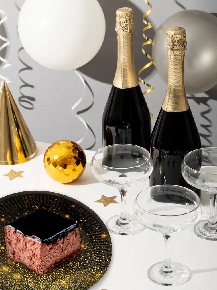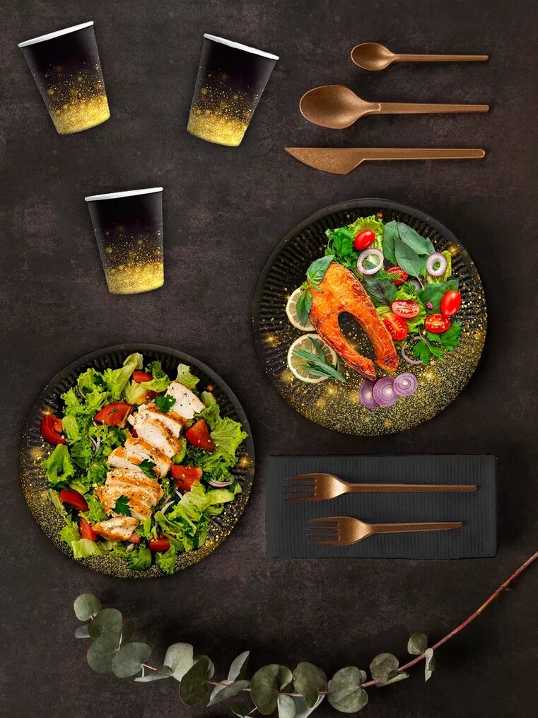 Купить Одноразовая посуда для праздника CLEANLY, разовые бумажные тарелки 23см и стаканы 200мл, праздничный набор на 12 персон