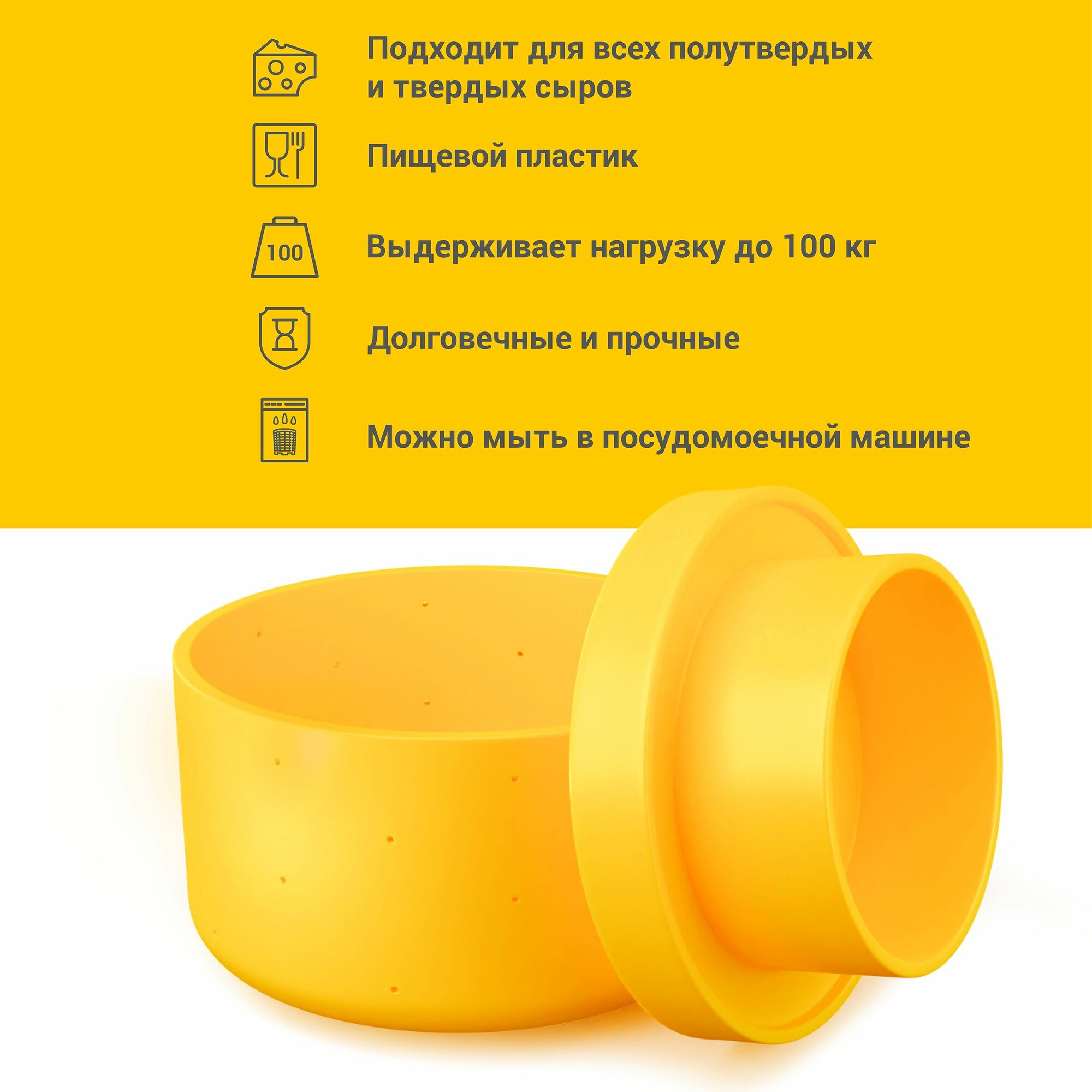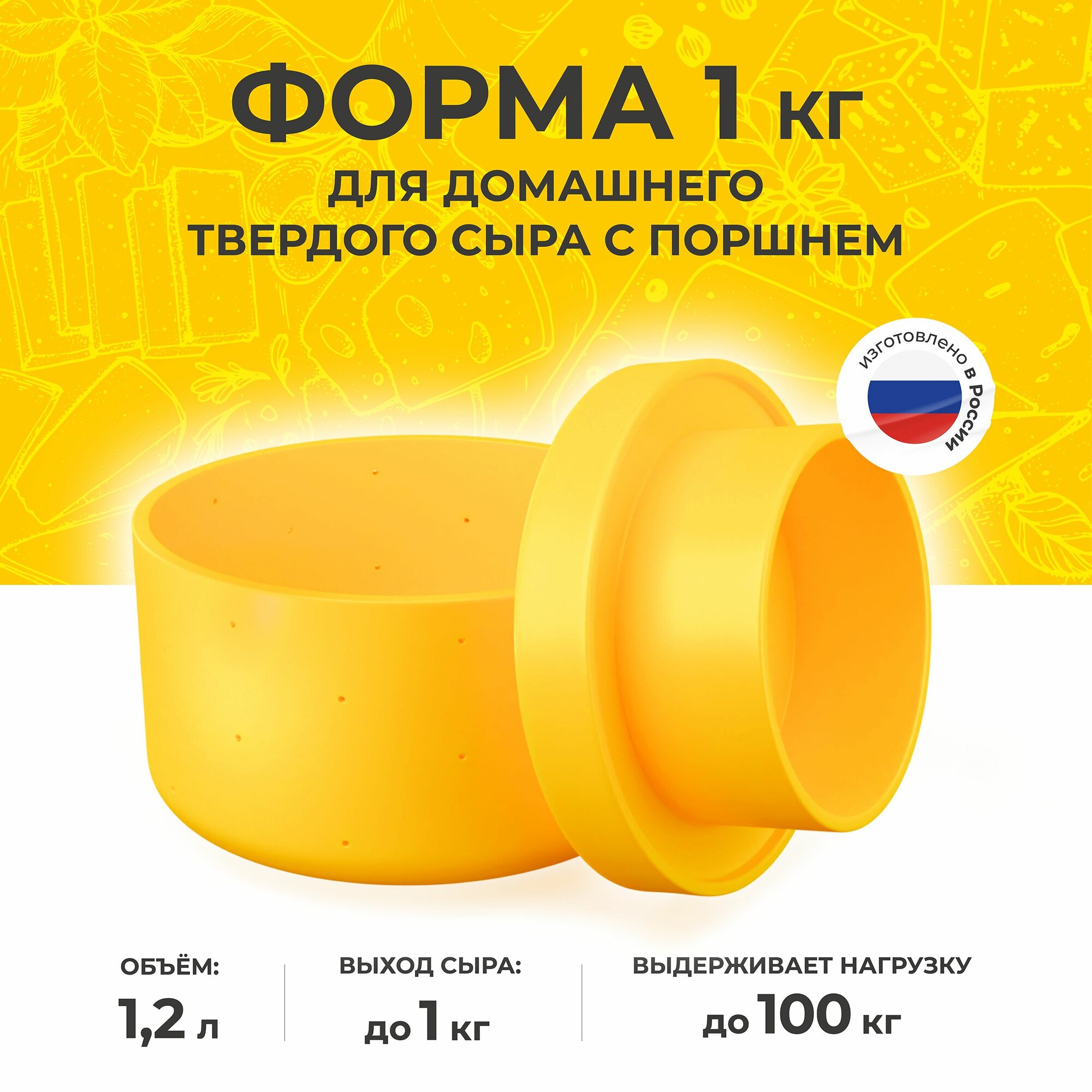 Купить Форма для приготовления домашнего твердого сыра 1 кг с поршнем, желтая