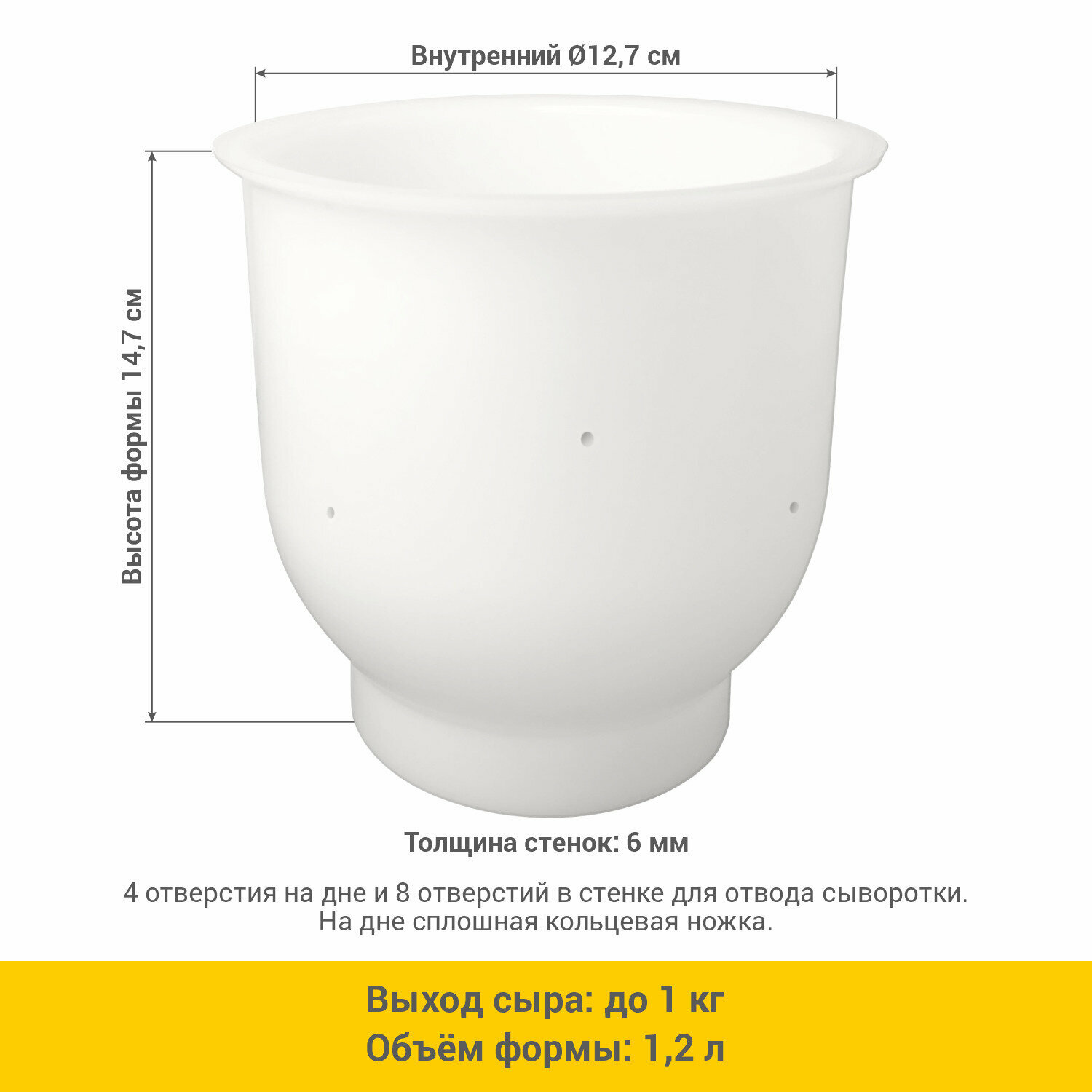 Форма для приготовления домашнего твердого сыра 1,5 кг с поршнем