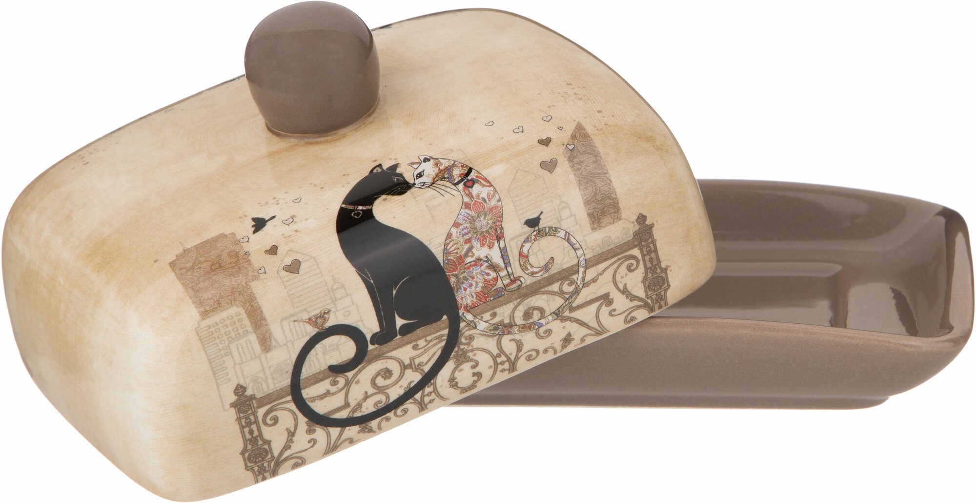 Купить Масленка Agness "Парижские коты", керамика, бежевая, с крышкой