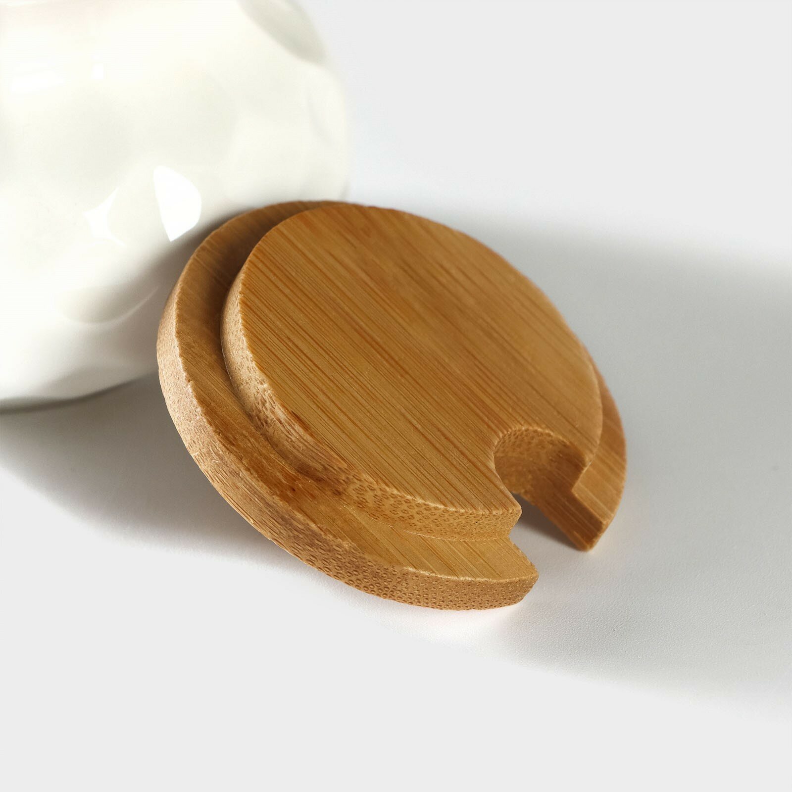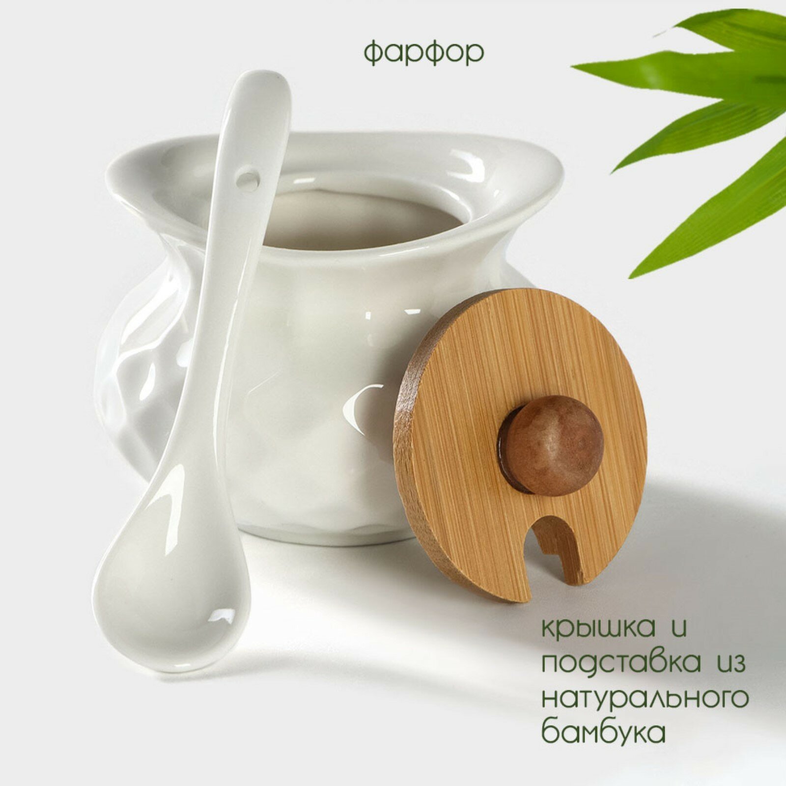 Сахарница фарфоровая с ложкой на деревянной подставке BellaTenero «Тюльпан», 350 мл, цвет белый