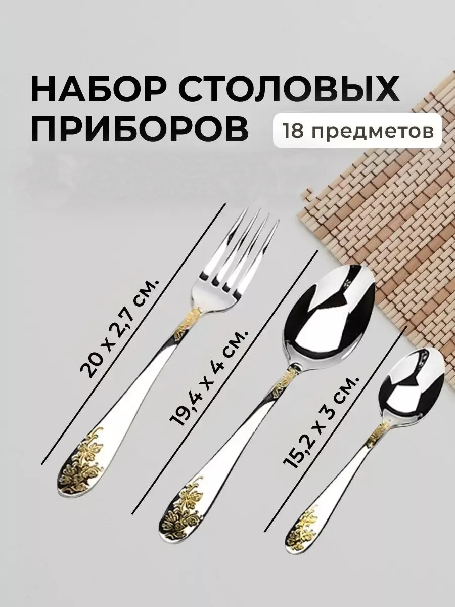 Набор столовых приборов, 18 штук, на 6 персон, в коробке, нержавеющая сталь интересное: