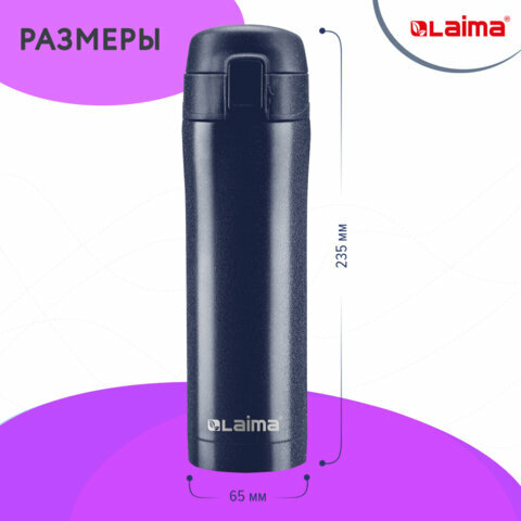 Термокружка LAIMA с двойной стальной стенкой, 470 мл, темно-синий металлик 608821