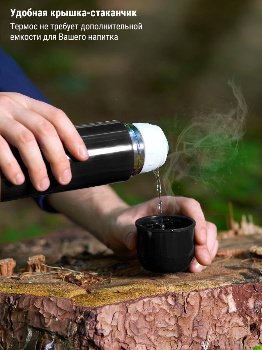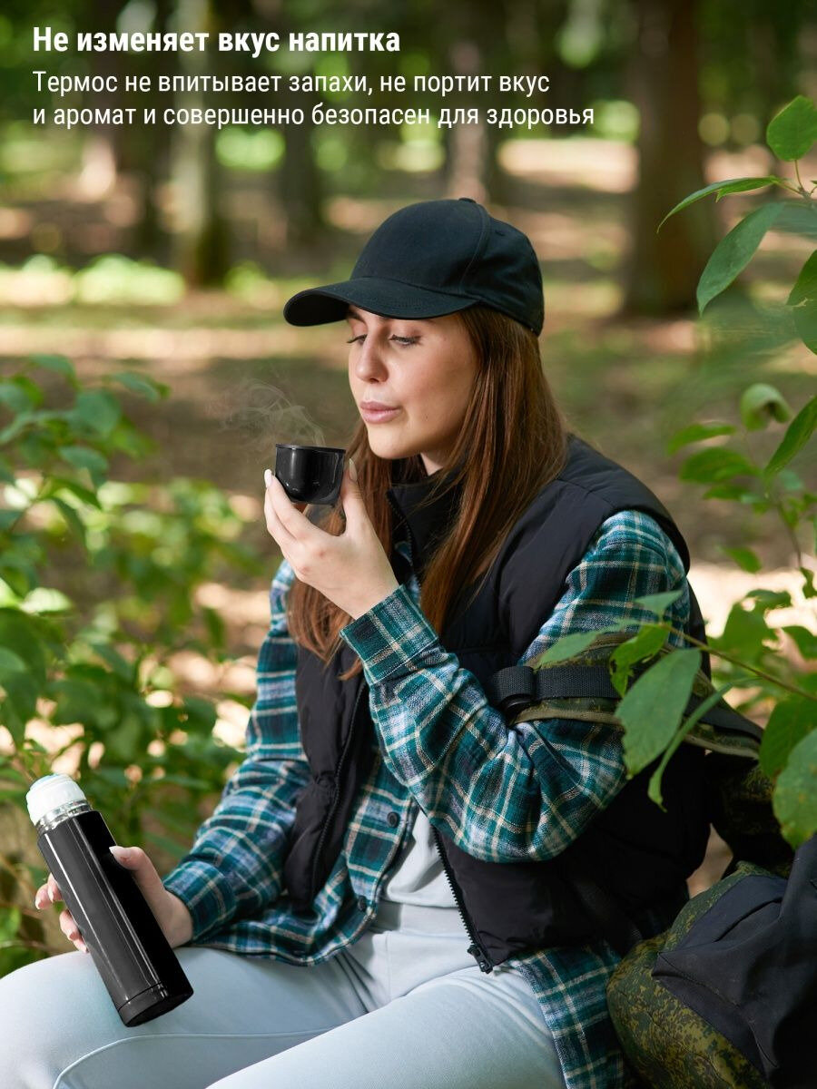 Термос Тайган универсальный 1 литр из нержавеющей стали для кофе воды и чая, туристическая походная посуда для дачи, рыбалки, природы и путешествий