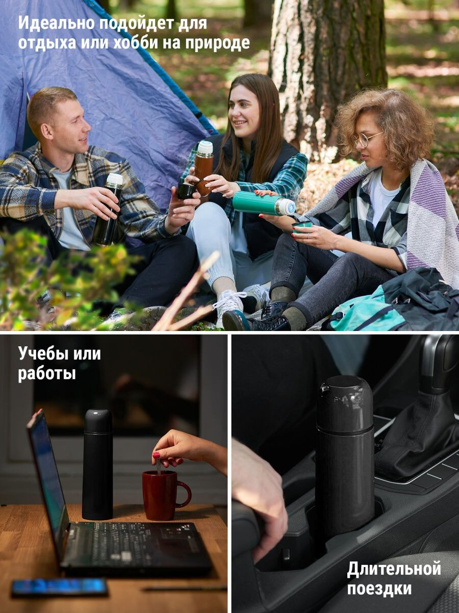 Термос Термос для чая, кофе, воды, смеси, напитков 0,5 литра, туристическая походная посуда и спорт инвентарь для чая кофе супа из нержавеющей стали