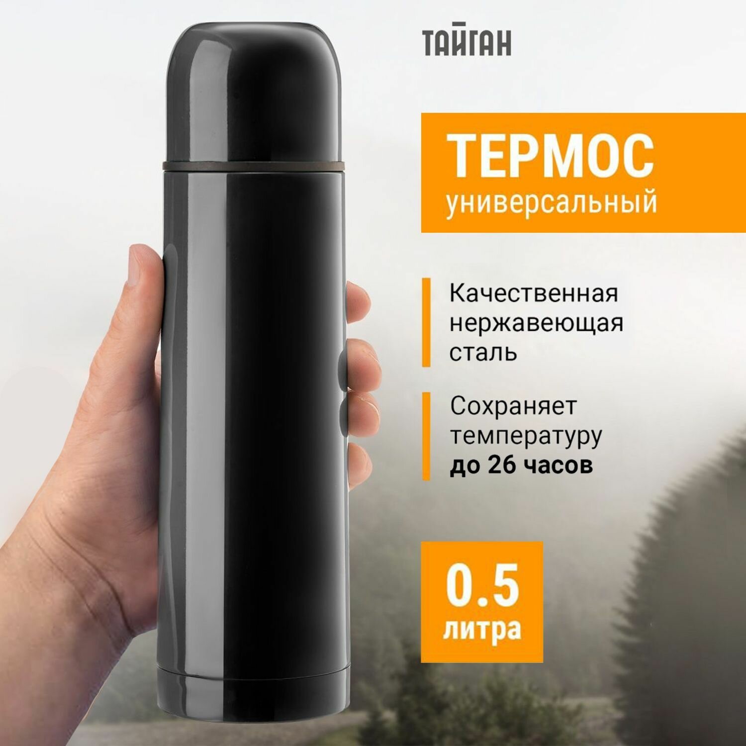 СохранитьТермос Тайган, 0,5 литра, туристическая походная посуда и спорт инвентарь для чая кофе супа из нержавеющей стали (нержавейка), подарок любимому мужу парню для рыбалки, природы и отдыха интересное: