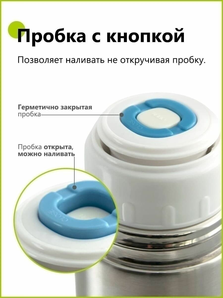 Термос для чая и кофе 0.5 л металлический с кнопкой