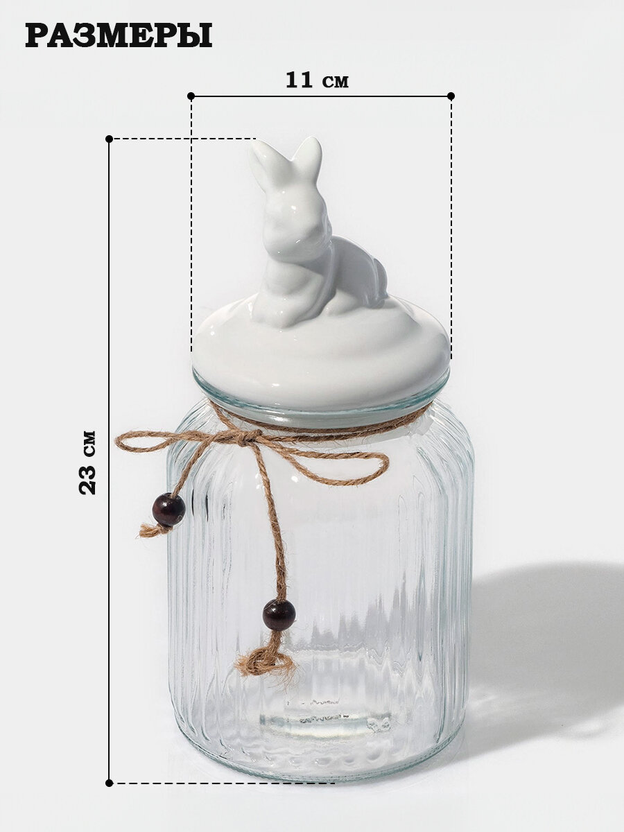 Банка для сыпучих продуктов с керамической крышкой, сахарница стеклянная Доляна «Зайка» 950 мл