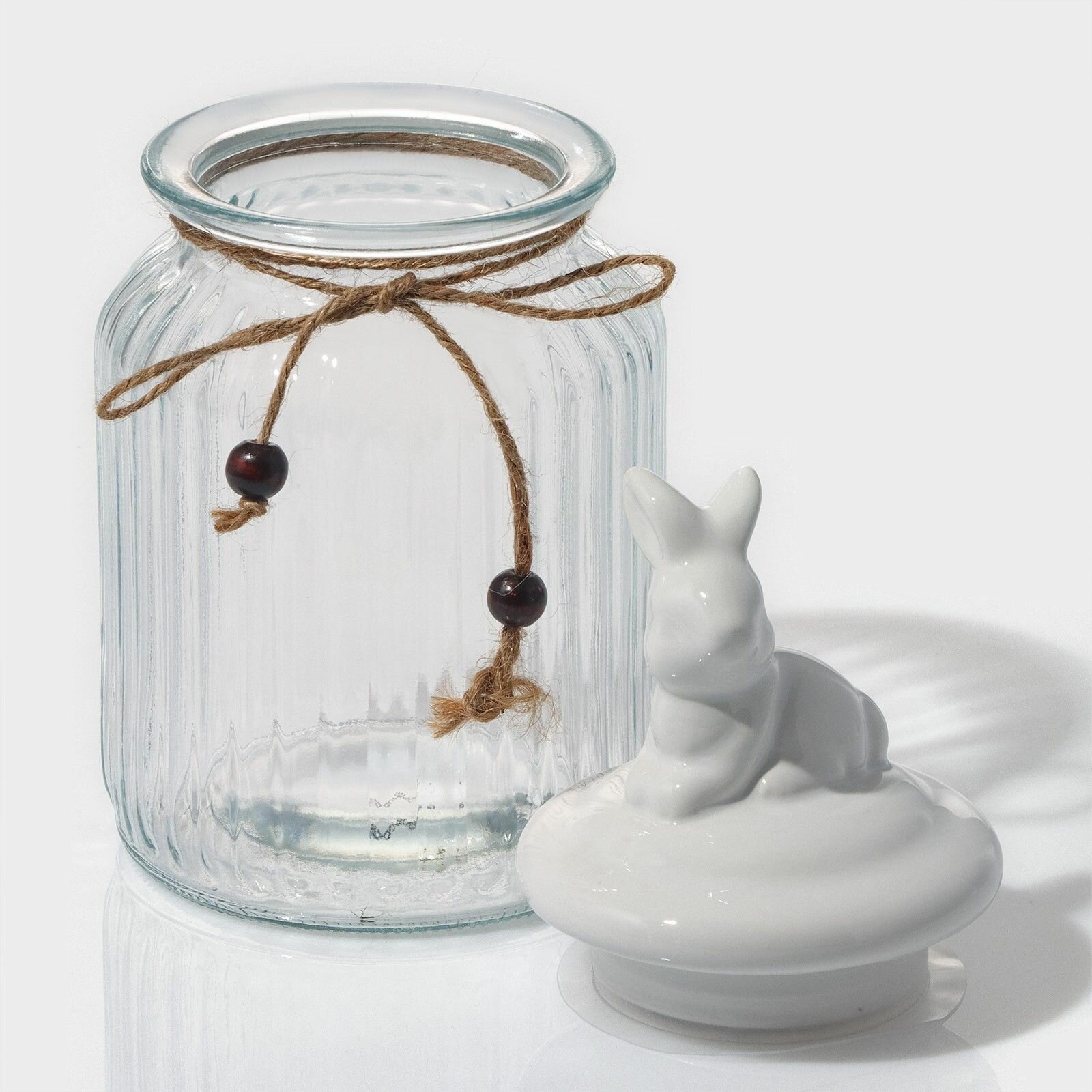 Банка для сыпучих продуктов с керамической крышкой, сахарница стеклянная Доляна «Зайка» 600 мл